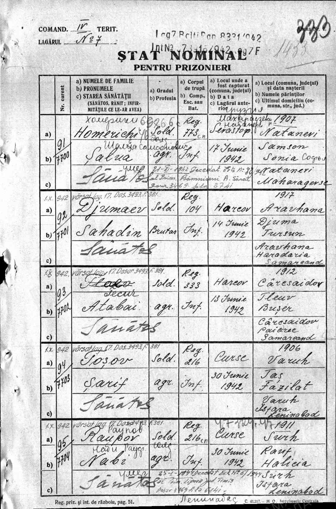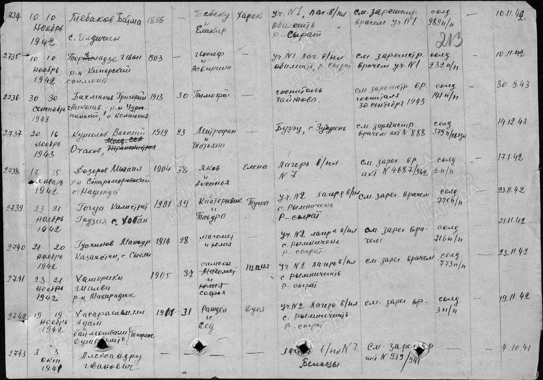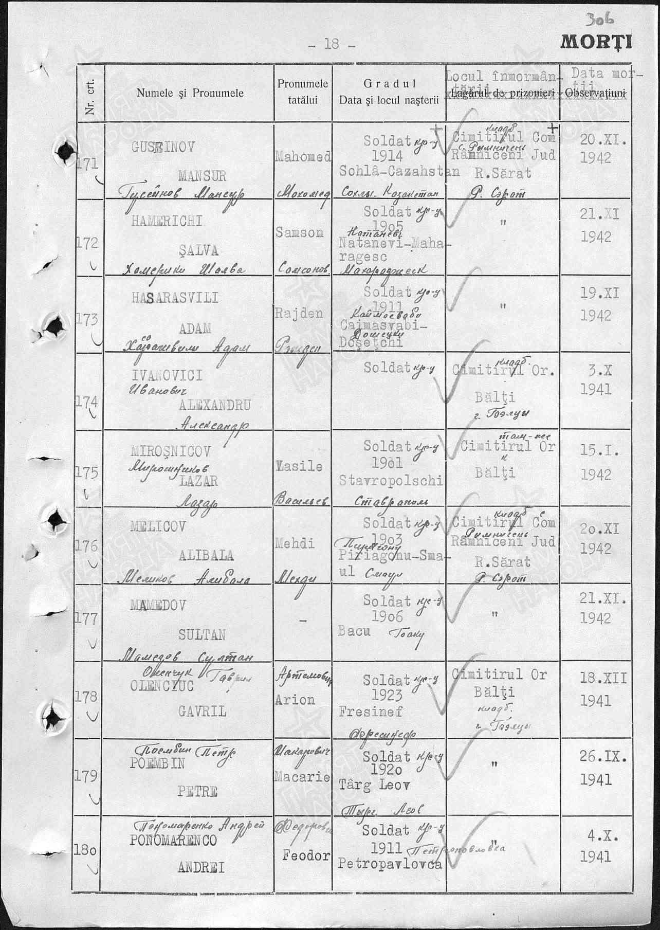 Место захоронения: Румыния, жуд. Рымнику-Сэрат, с. Рымничень, участок № 2 лагеря военнопленных
