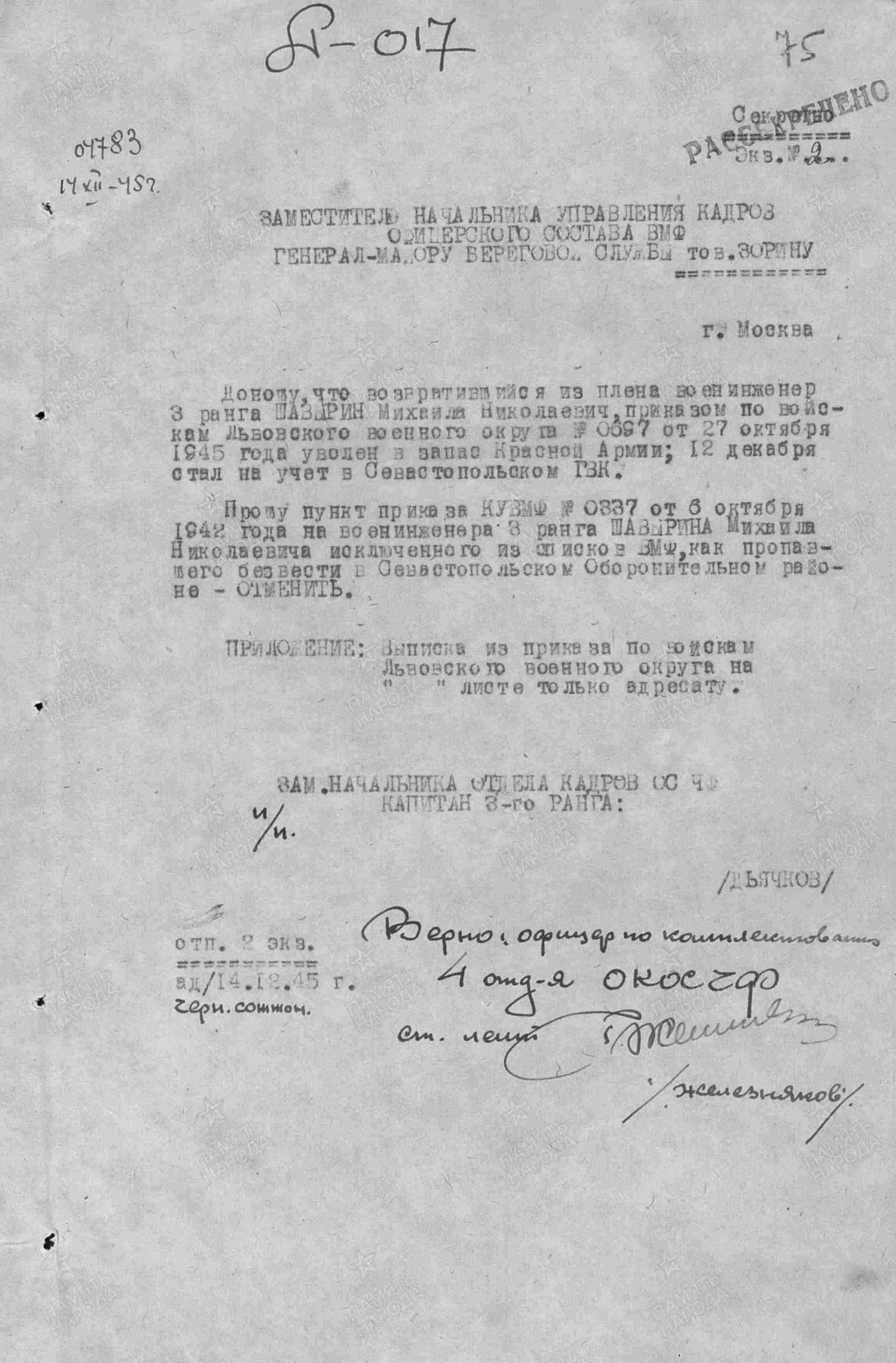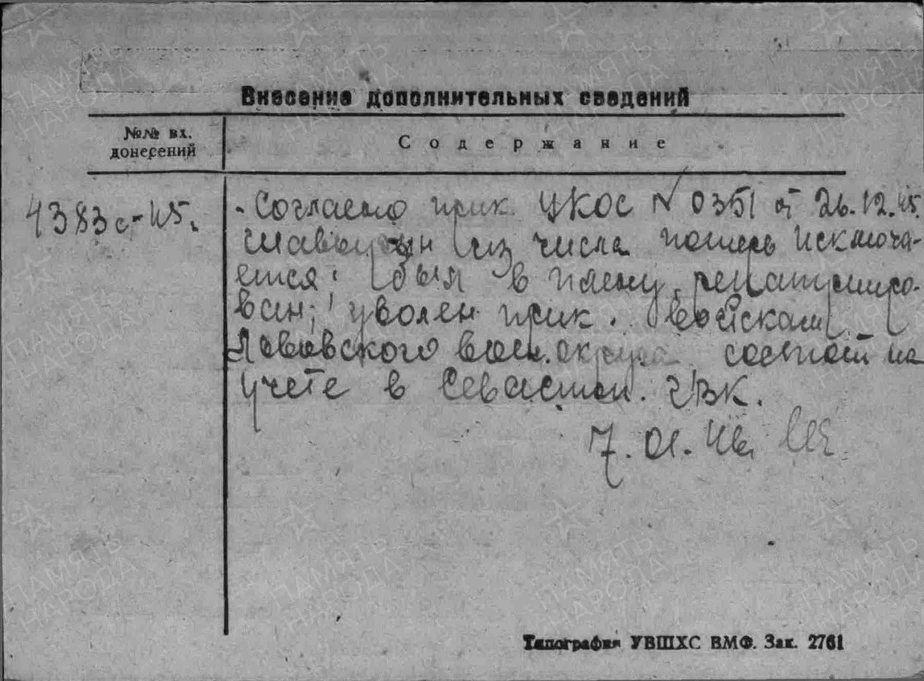 Дата выбытия: 03.07.1942 Севастополь