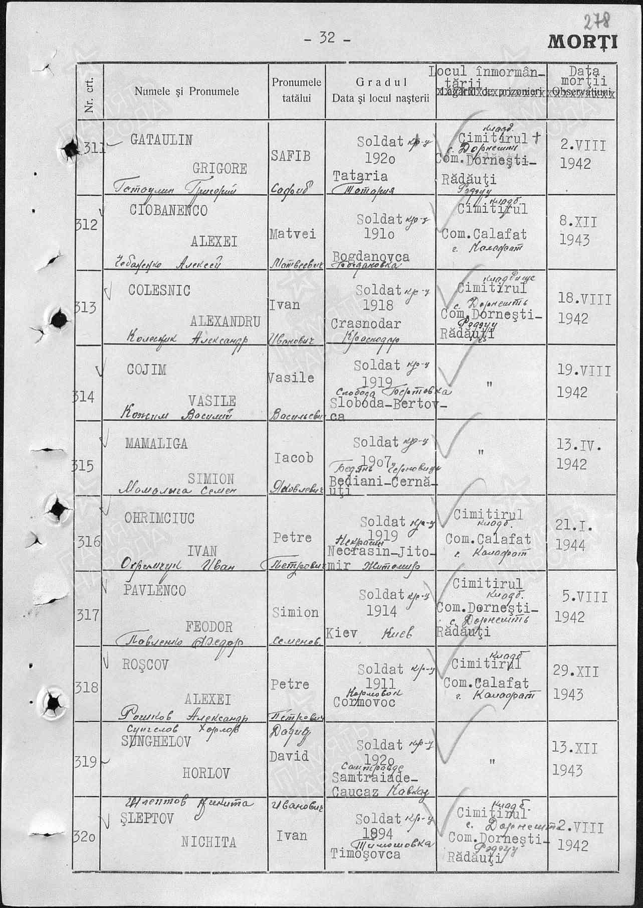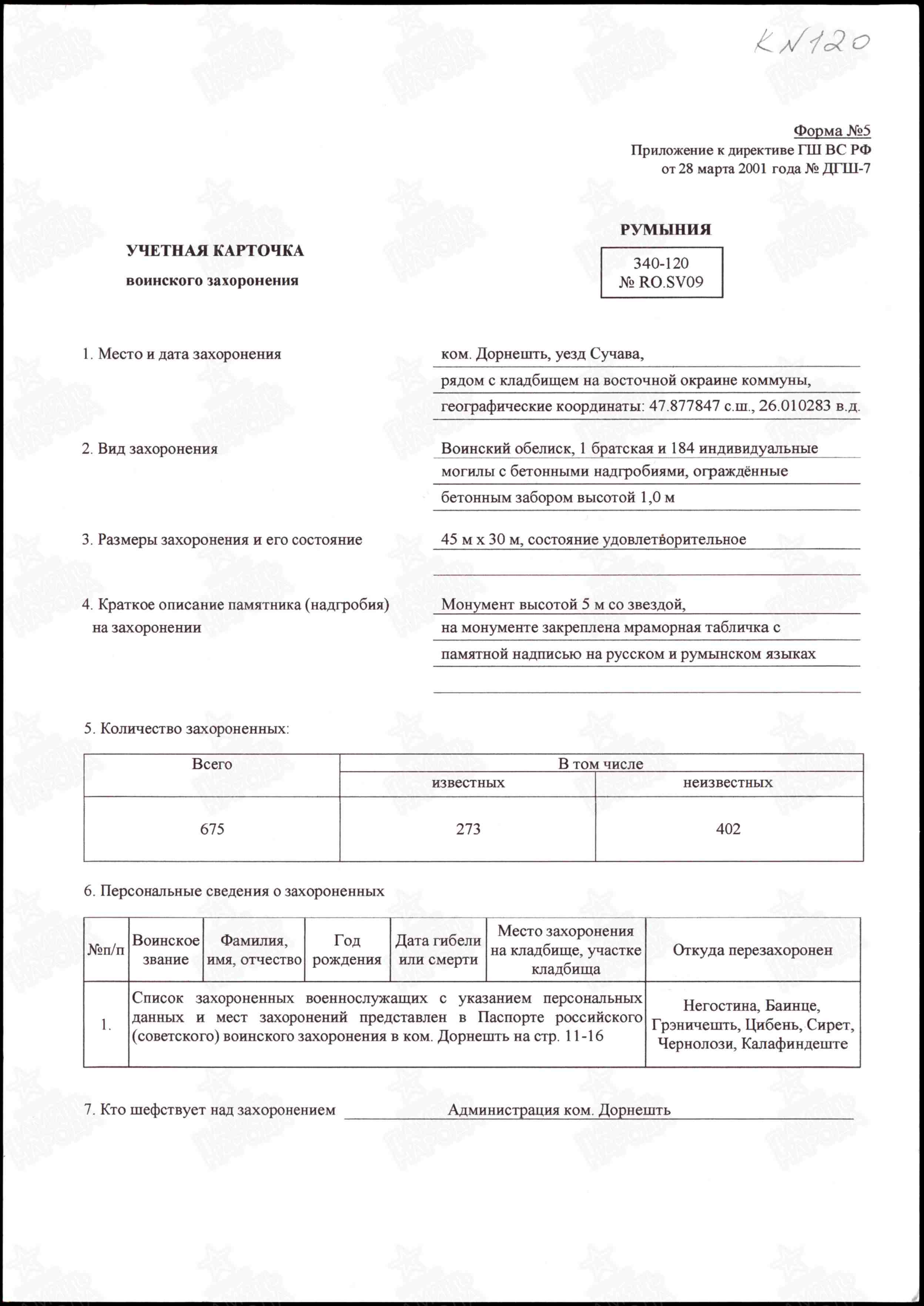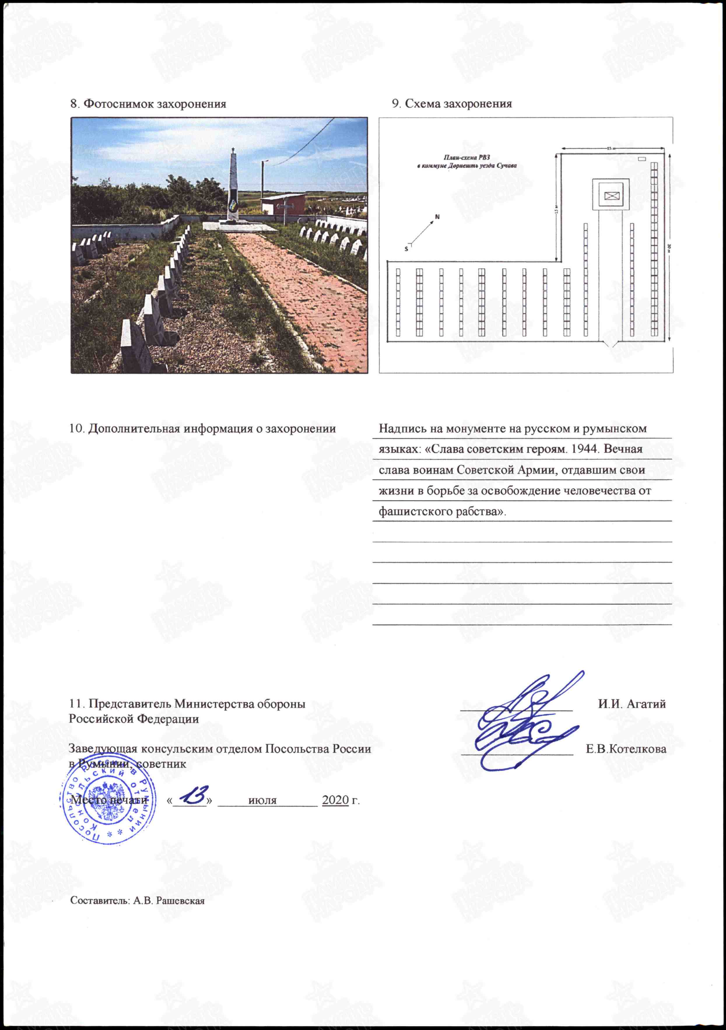 Дополнительно: Страна захоронения: Румыния. Регион захоронения: Сучава уезд. Место захоронения: комм. Дорнешть, восточная окраина, кладбище, рядом. Могила: НУВ БМ