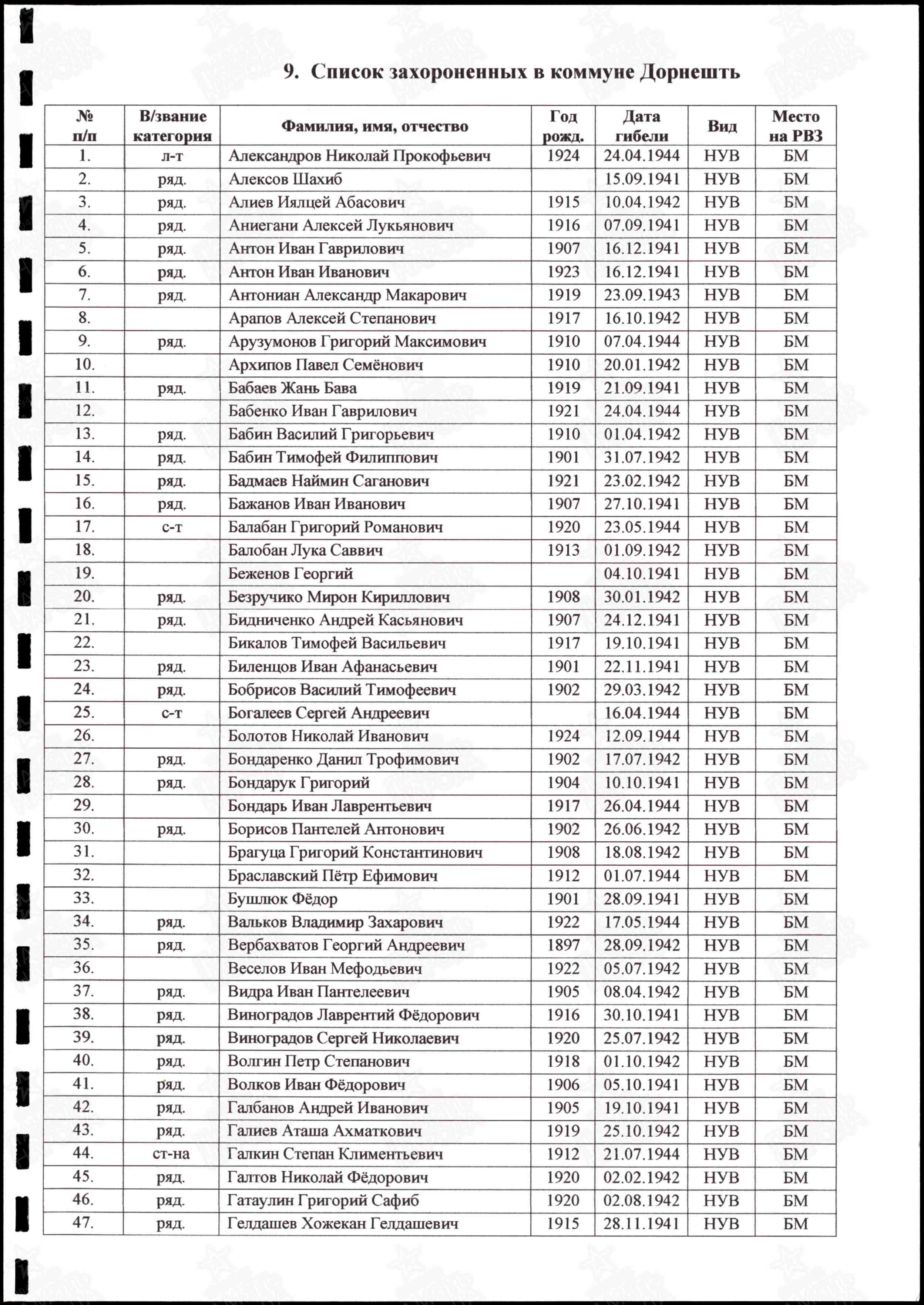 Информация: ЦАМО ф.58,о.977528,д.128; ЦАМО ф.58,о.18003,д.1607; Паспорт захоронения