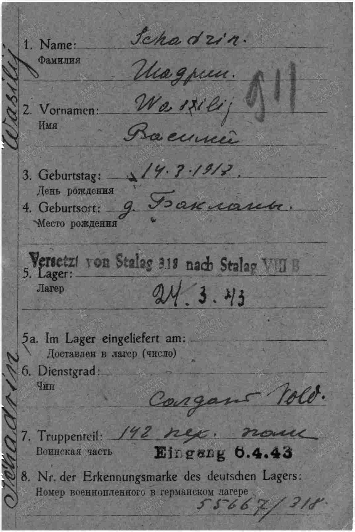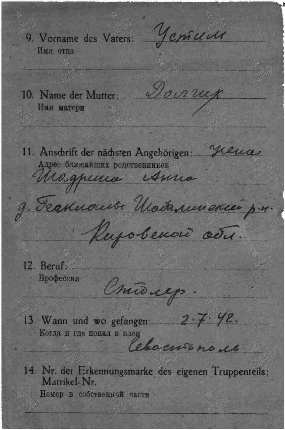 Информация: ГА Кировской области, ф.Трофейная и фильтрационная картотека, ф. Р3819, о.1А, д.9588