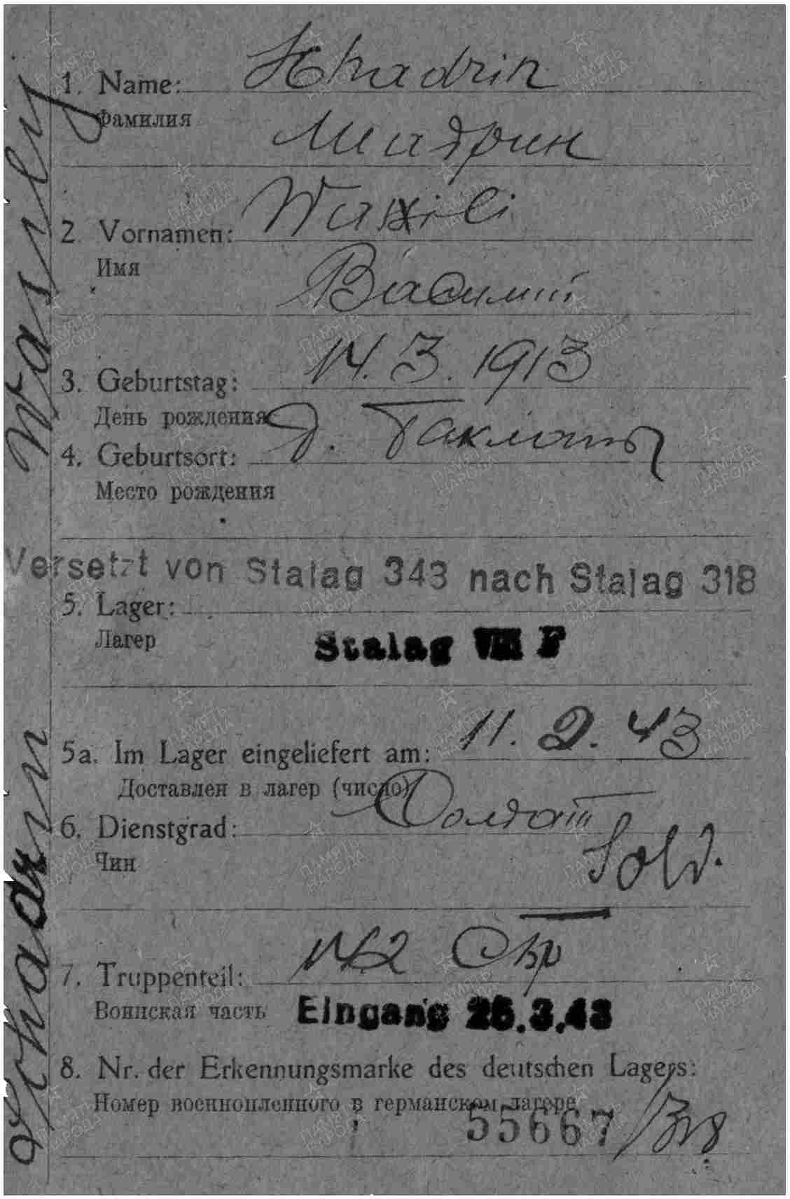 Место заключения: шталаг VIII F (318)