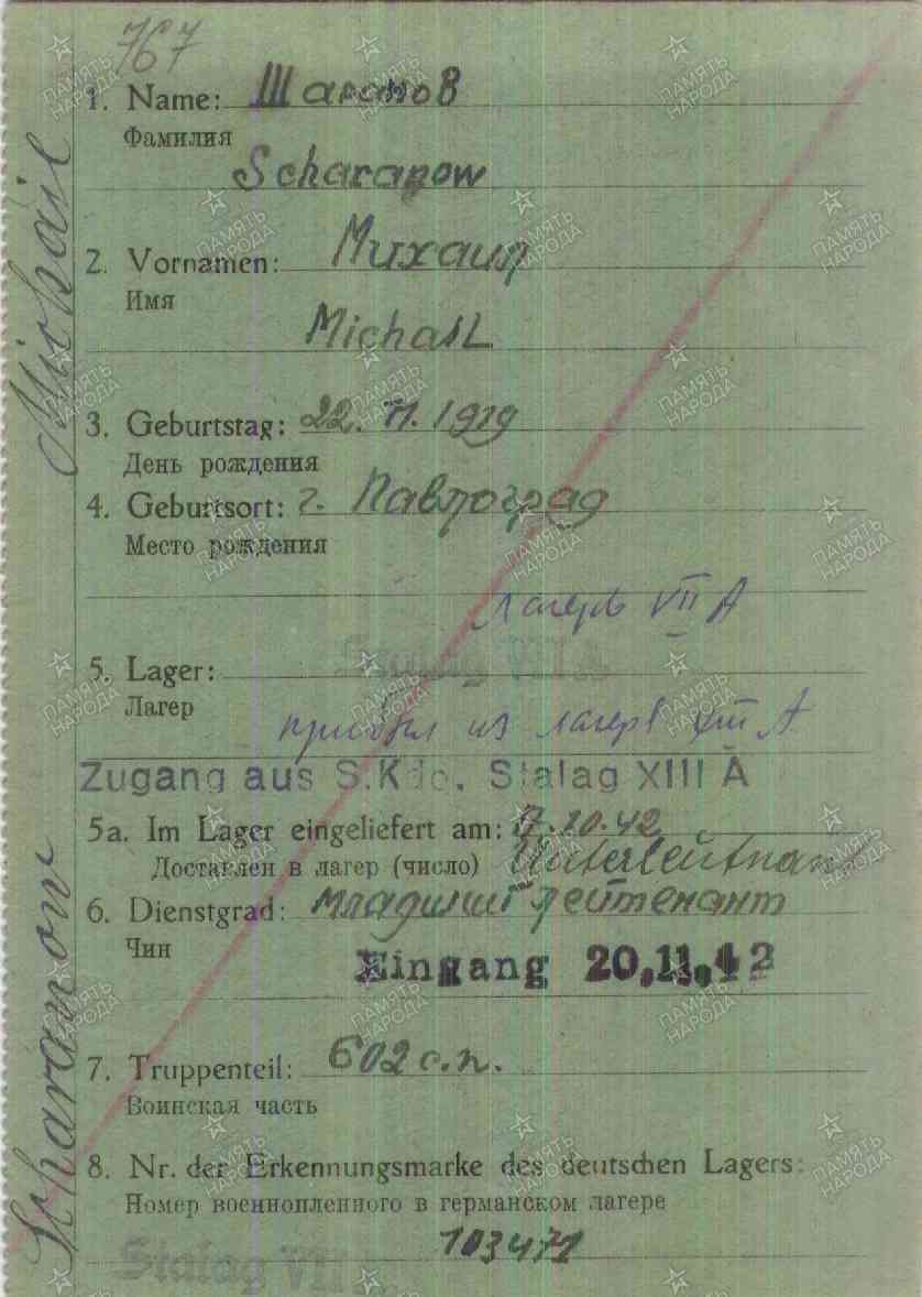 Место заключения:шталаг VII A