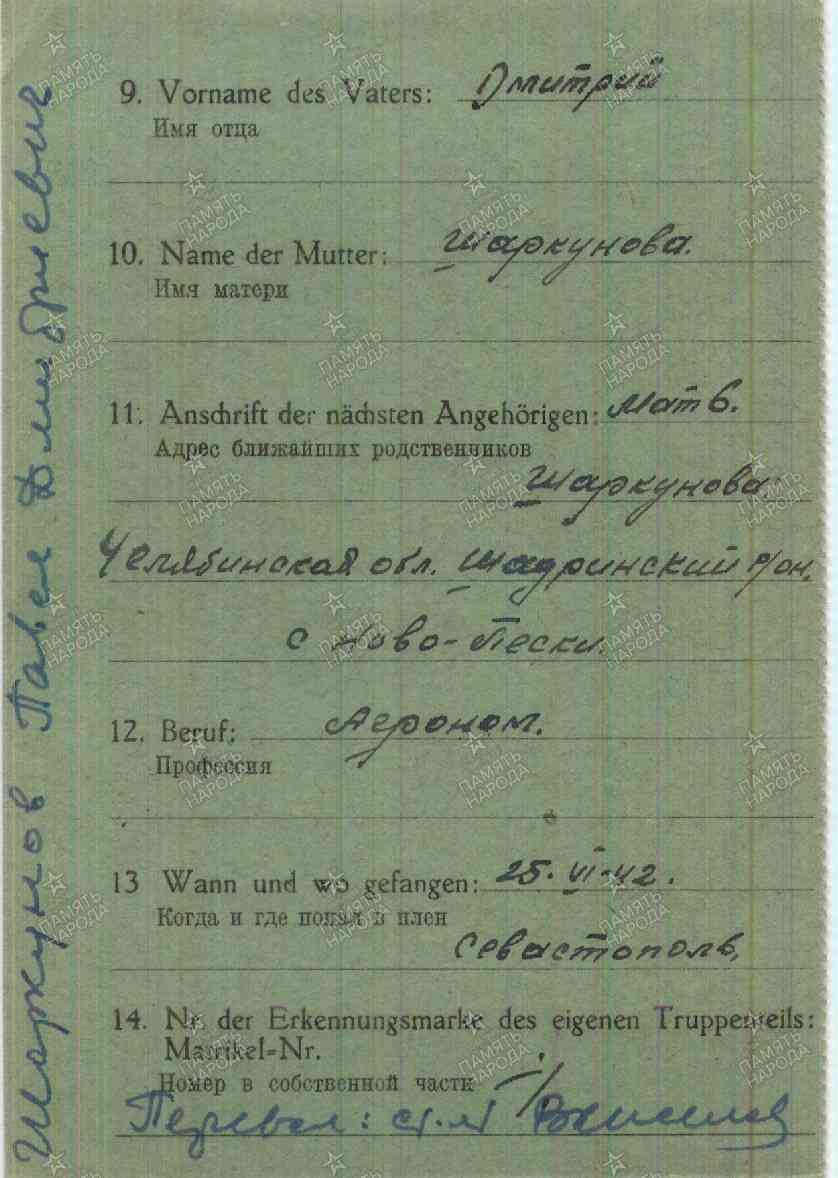 Дополнительно:Дата призыва: 03.03.1942 Место призыва: Шадринский РВК, Курганская обл., Шадринский р-н.