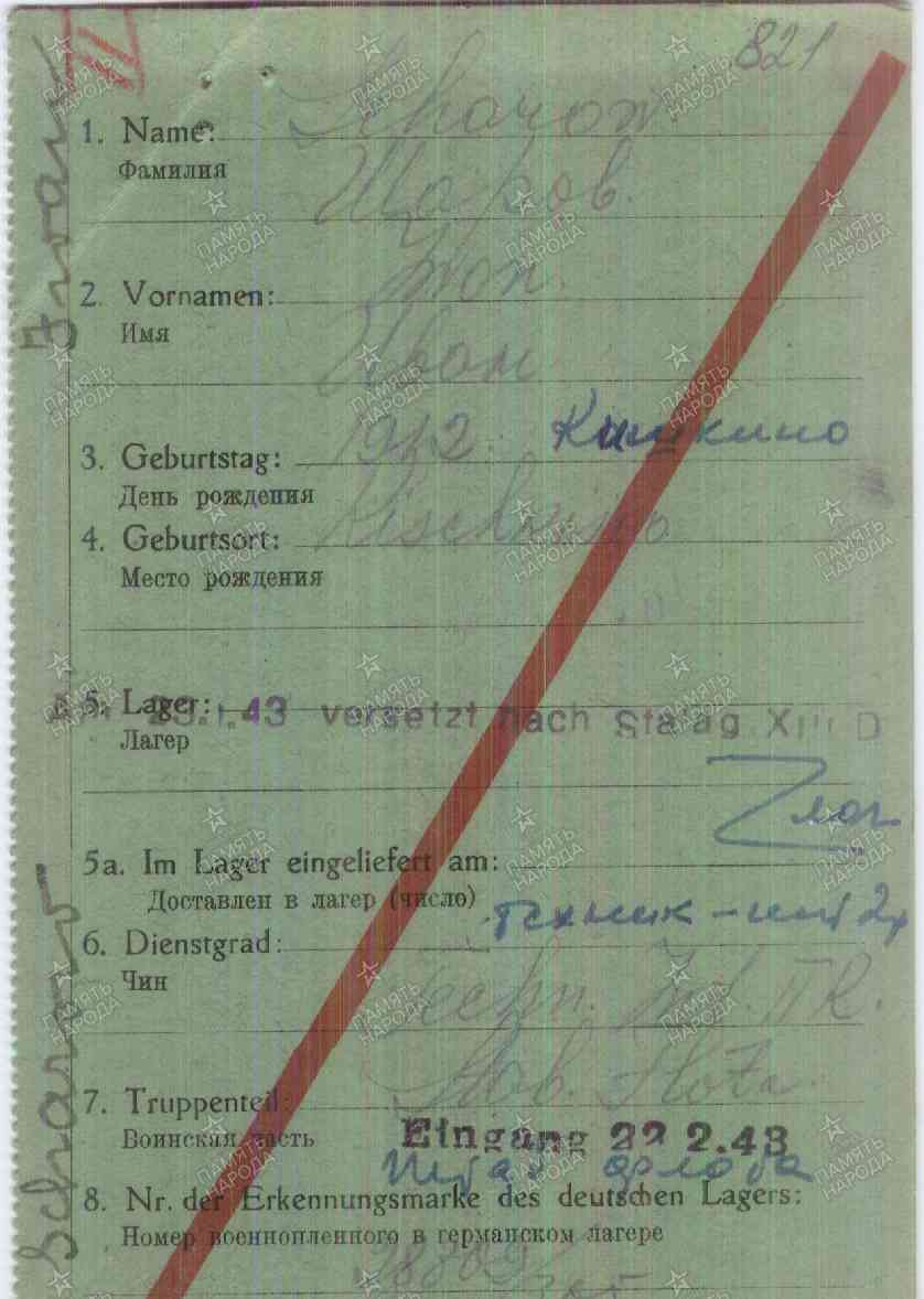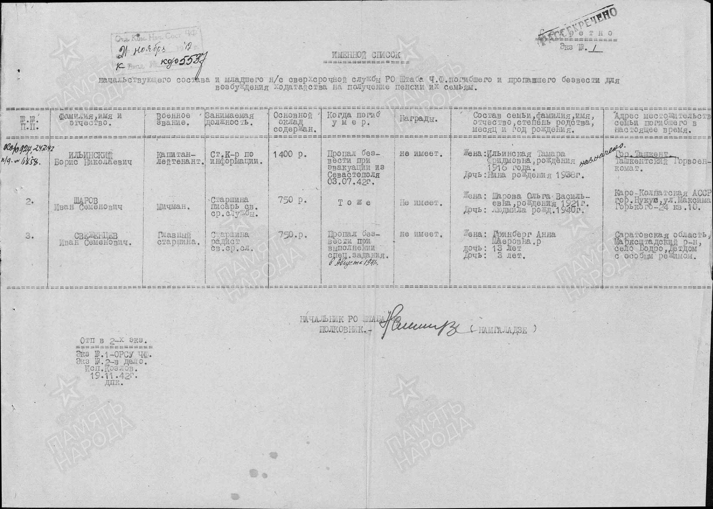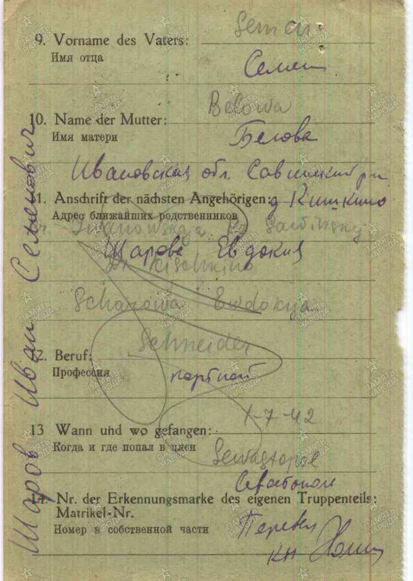 Информация: ЦВМА ф.920,о.2,д.469; ЦВМА ф.920,о.2,д.470; ЦАМО ф.58,о.18003,д.1445; ЦАМО Картотека военнопленных офицеров
