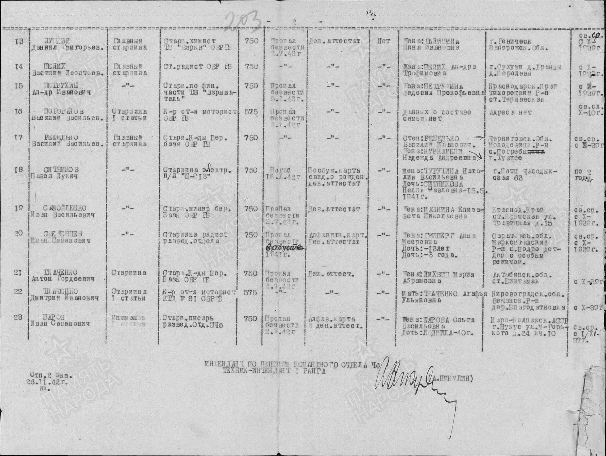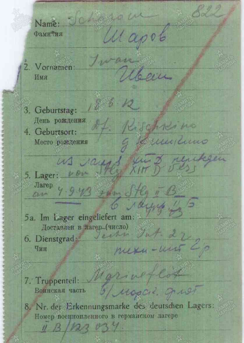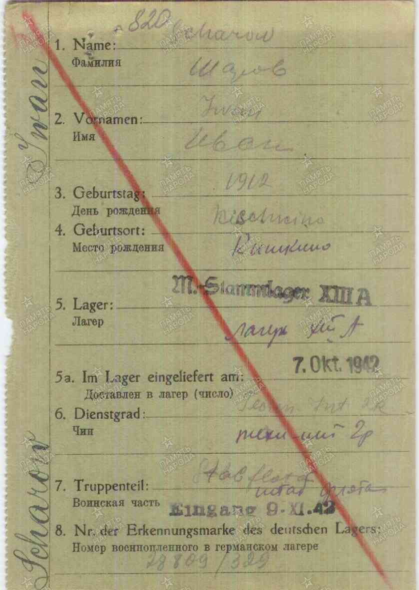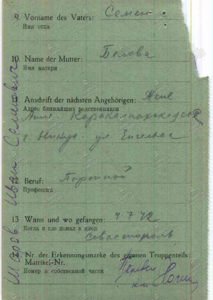 Информация: ЦВМА ф.920,о.2,д.469; ЦВМА ф.920,о.2,д.470; ЦАМО ф.58,о.18003,д.1445; ЦАМО Картотека военнопленных офицеров