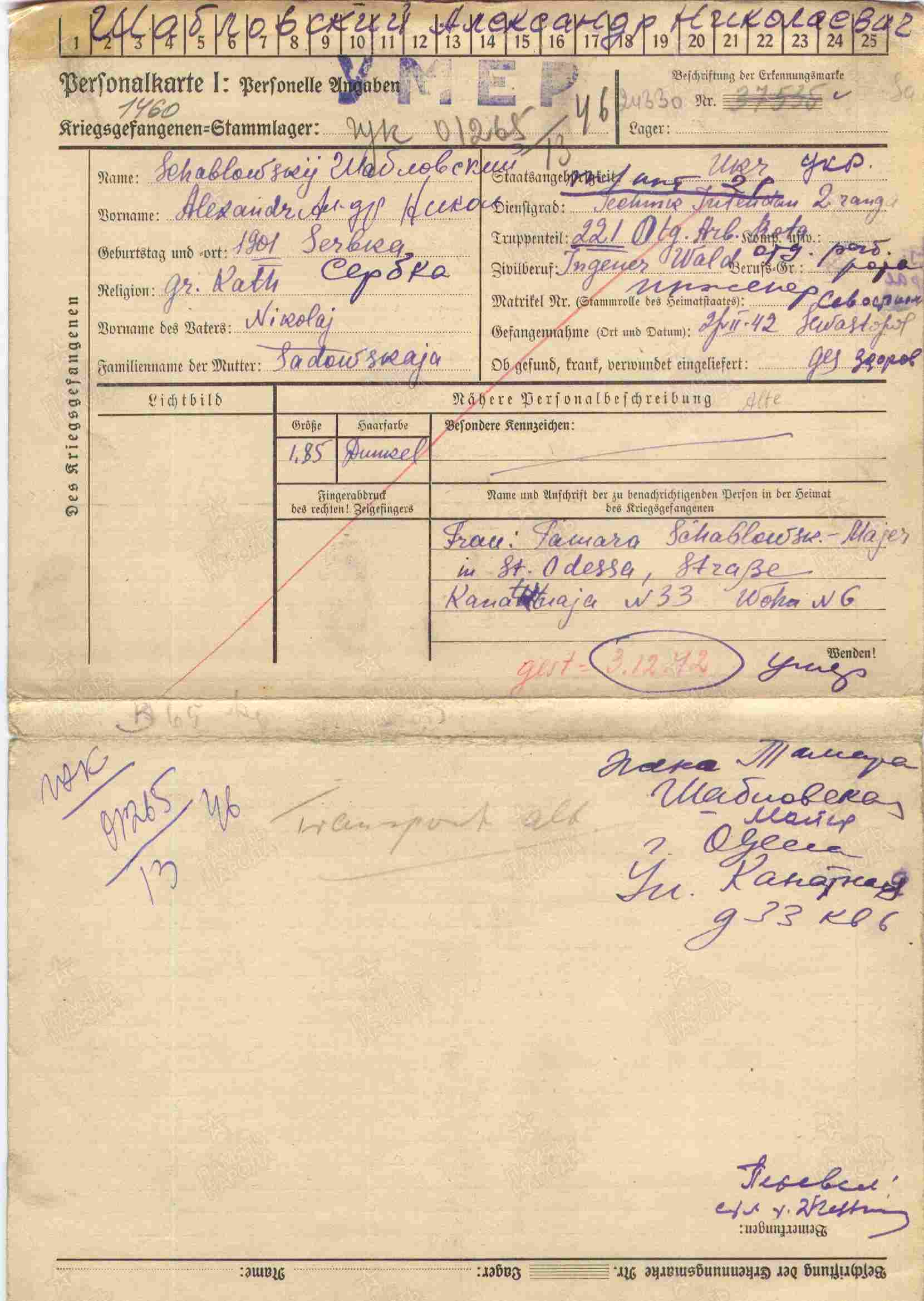 Карточка военнопленного.Лист2