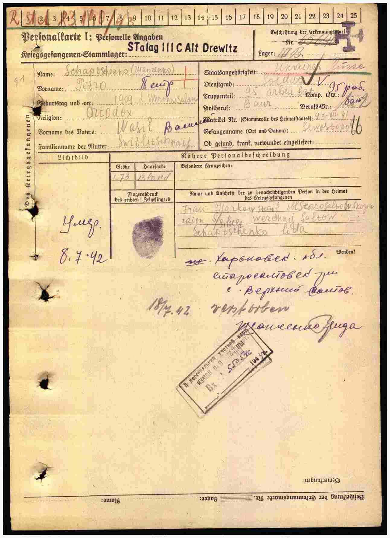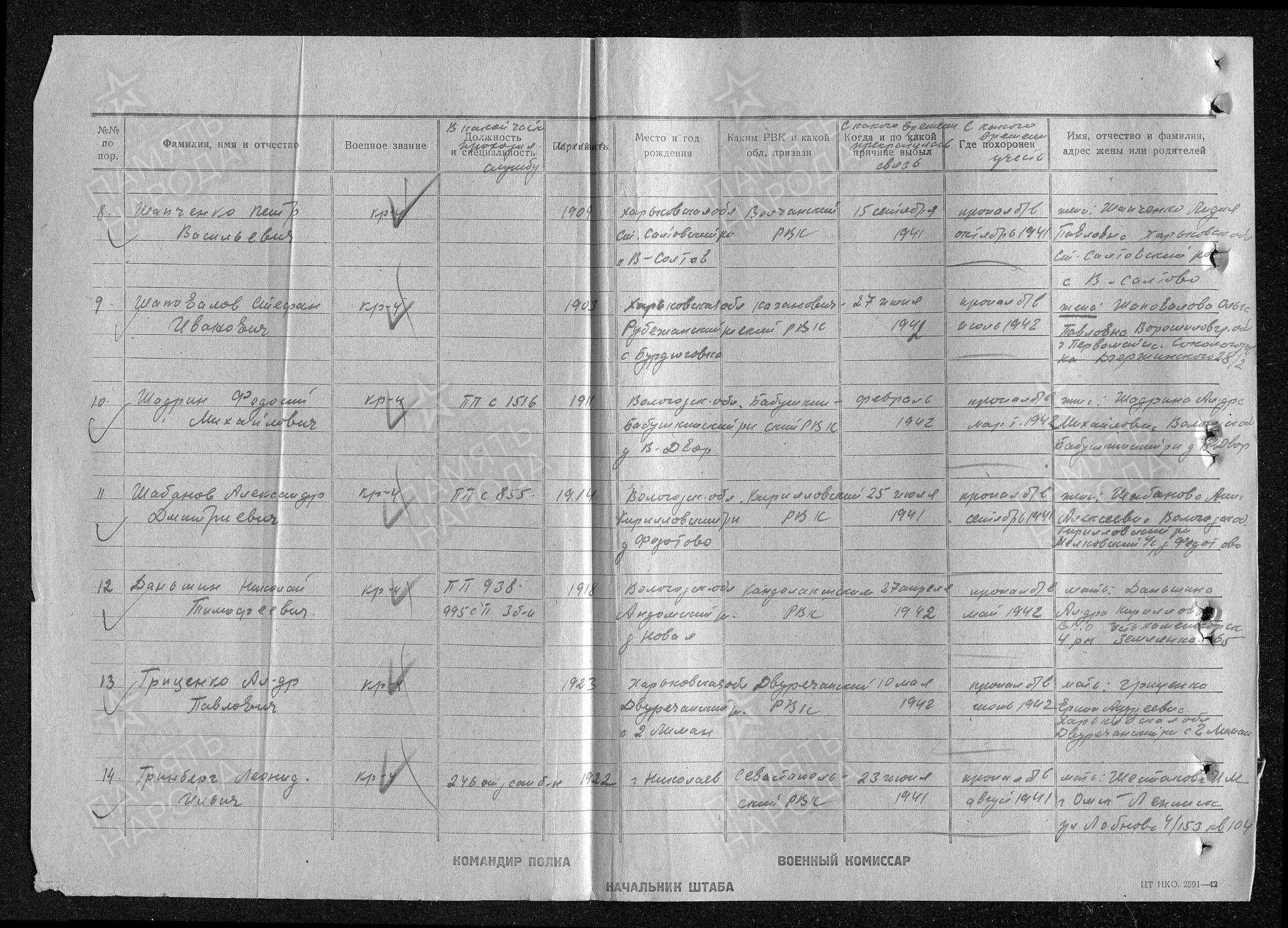 Дополнительно: Место призыва: Волчанский РВК, Украинская ССР, Харьковская обл., Волчанский р-н