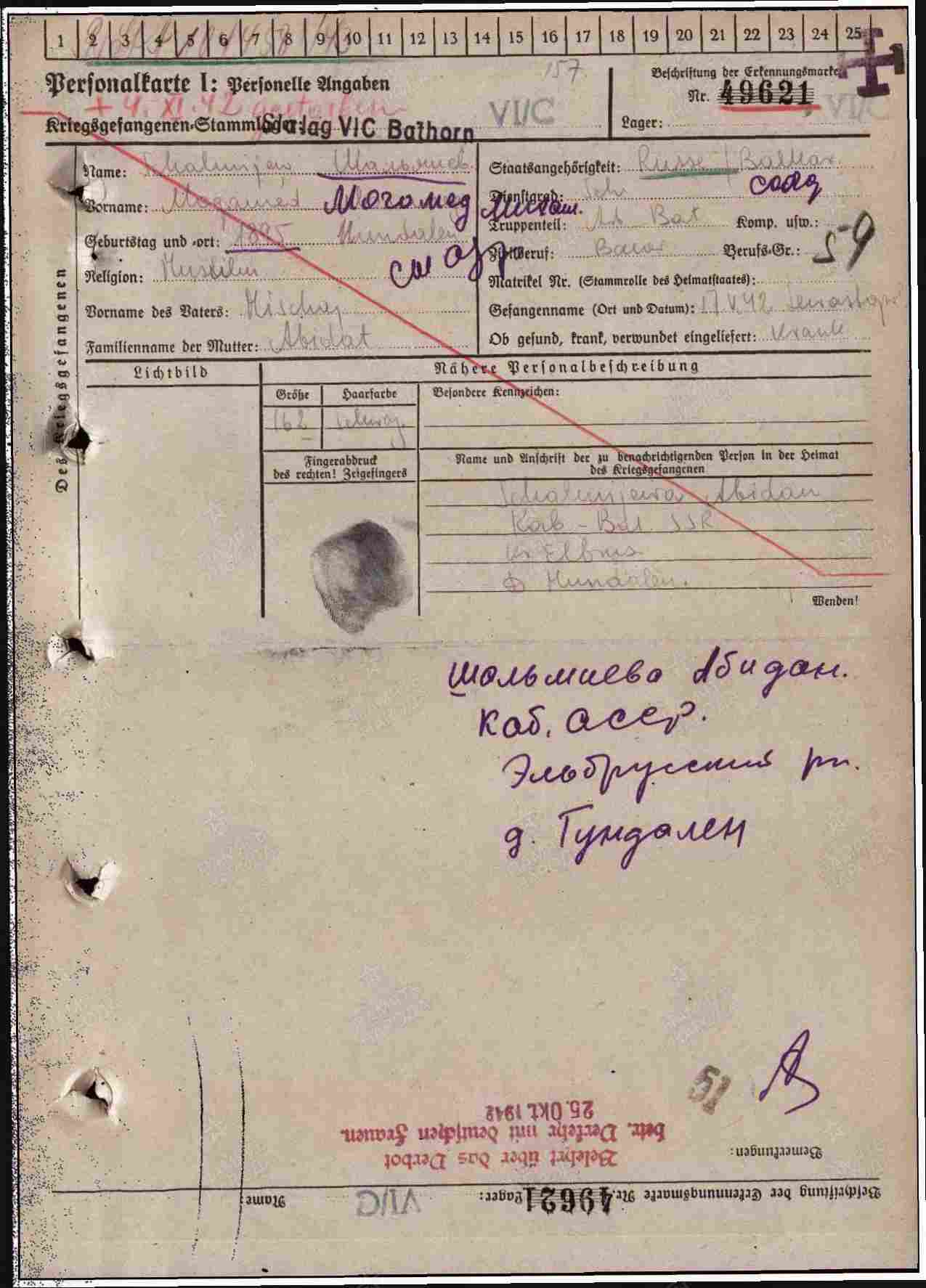 Карточка военнопленного.Лист2