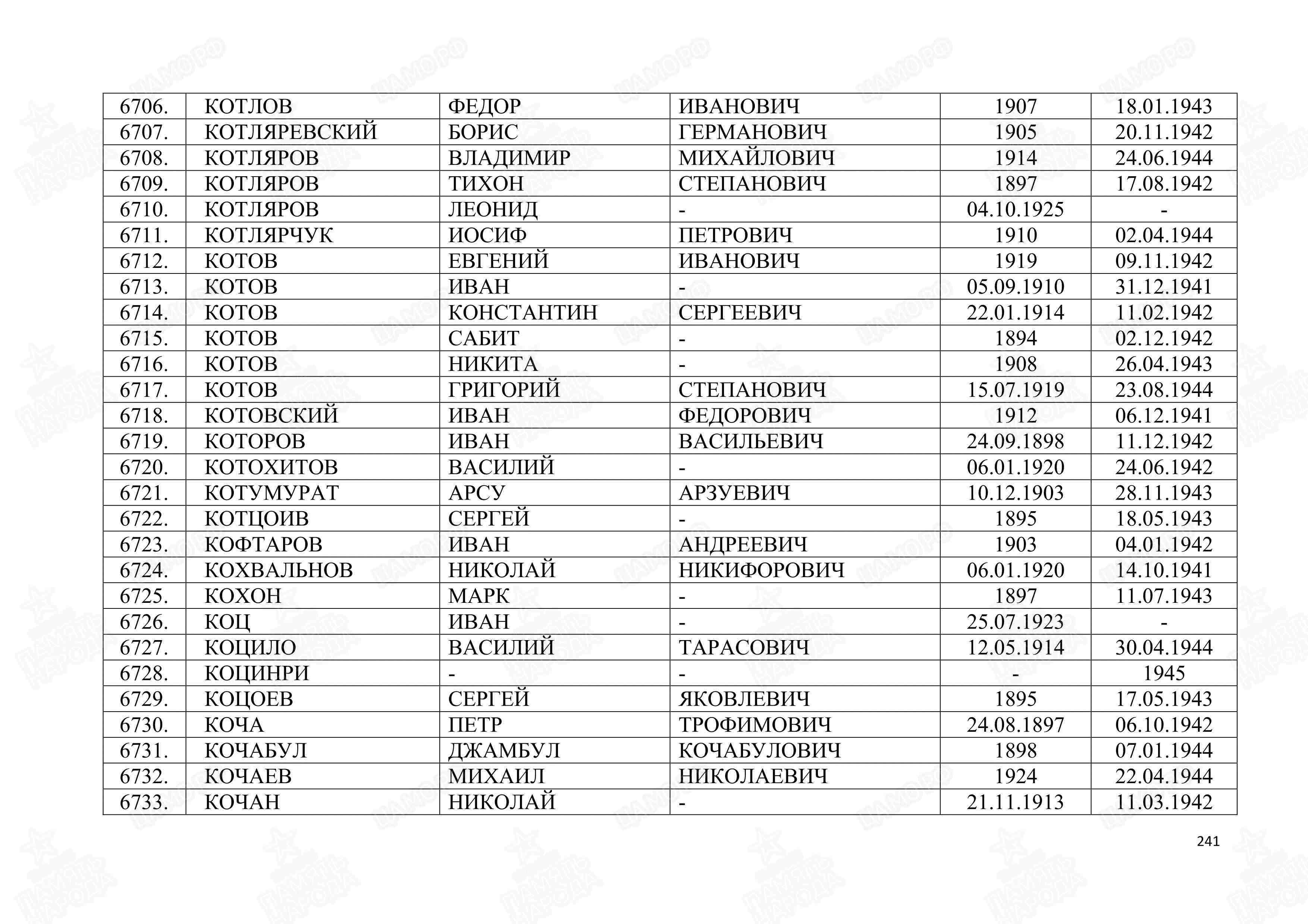 ЦВМА Картотека безвозвратных потерь; ЦВМА ф.864,о.1,д.1378; Филиал ЦАМО (архив ВМФ) ф.Послужная картотека моряков, о.29,д.20; ЦАМО ф.58,о.977520,д.1417; ЦАМО ф.58,о.977521,д.2016; Паспорт захоронения
