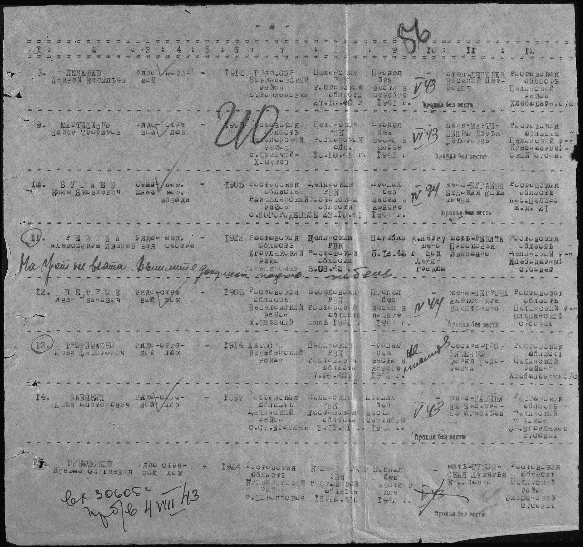 ЦВМО ф.58,о.977521,д.451; ЦАМО ф.58,о.977520,д.3018; ЦАМО ф.58,о.18003,д.1178; ЦАМО ф.58,о.18003,д.850