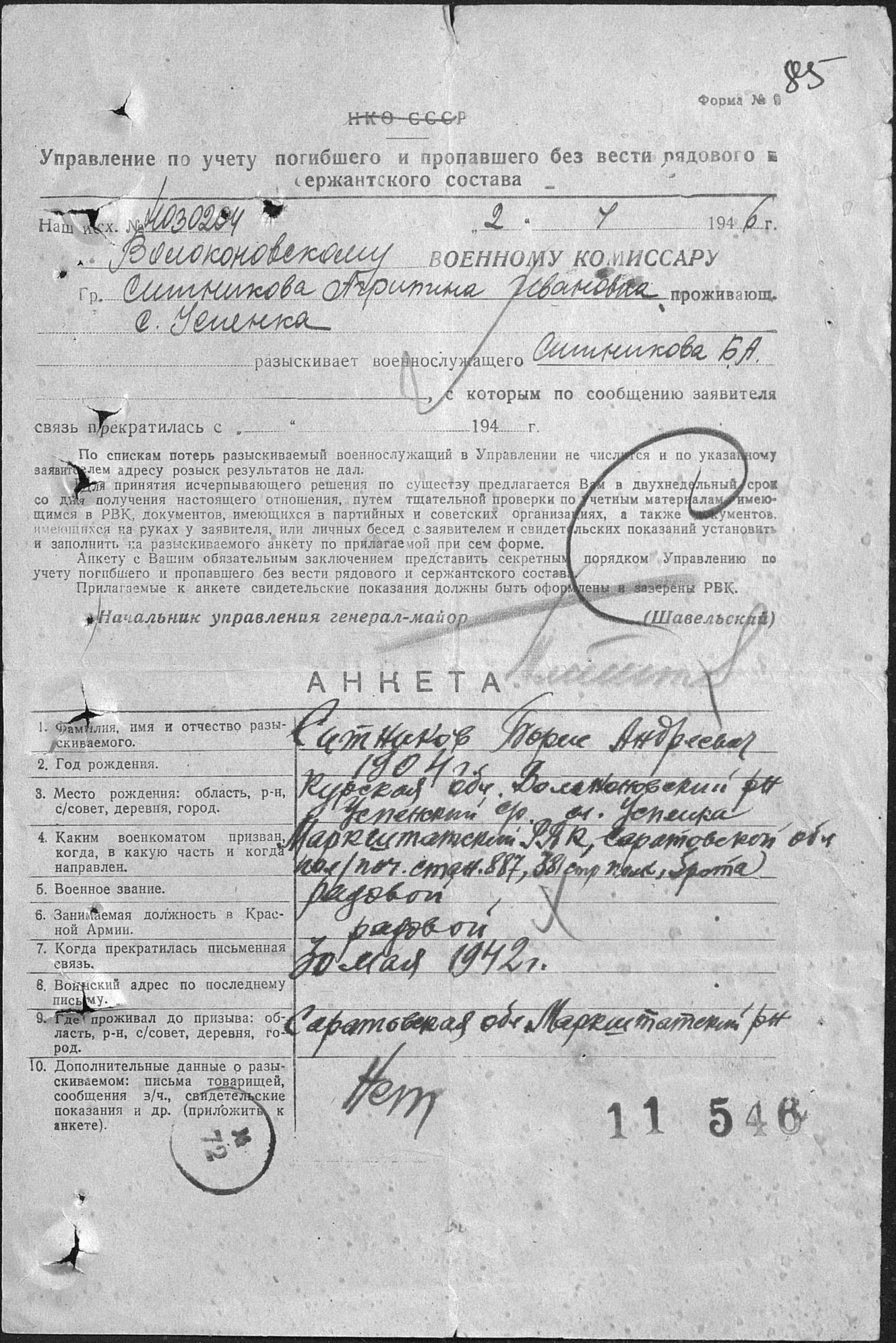Дополнительно: Место призыва: Марксштадтский РВК, Немцев Поволжья АССР, Марксштадтский р-н