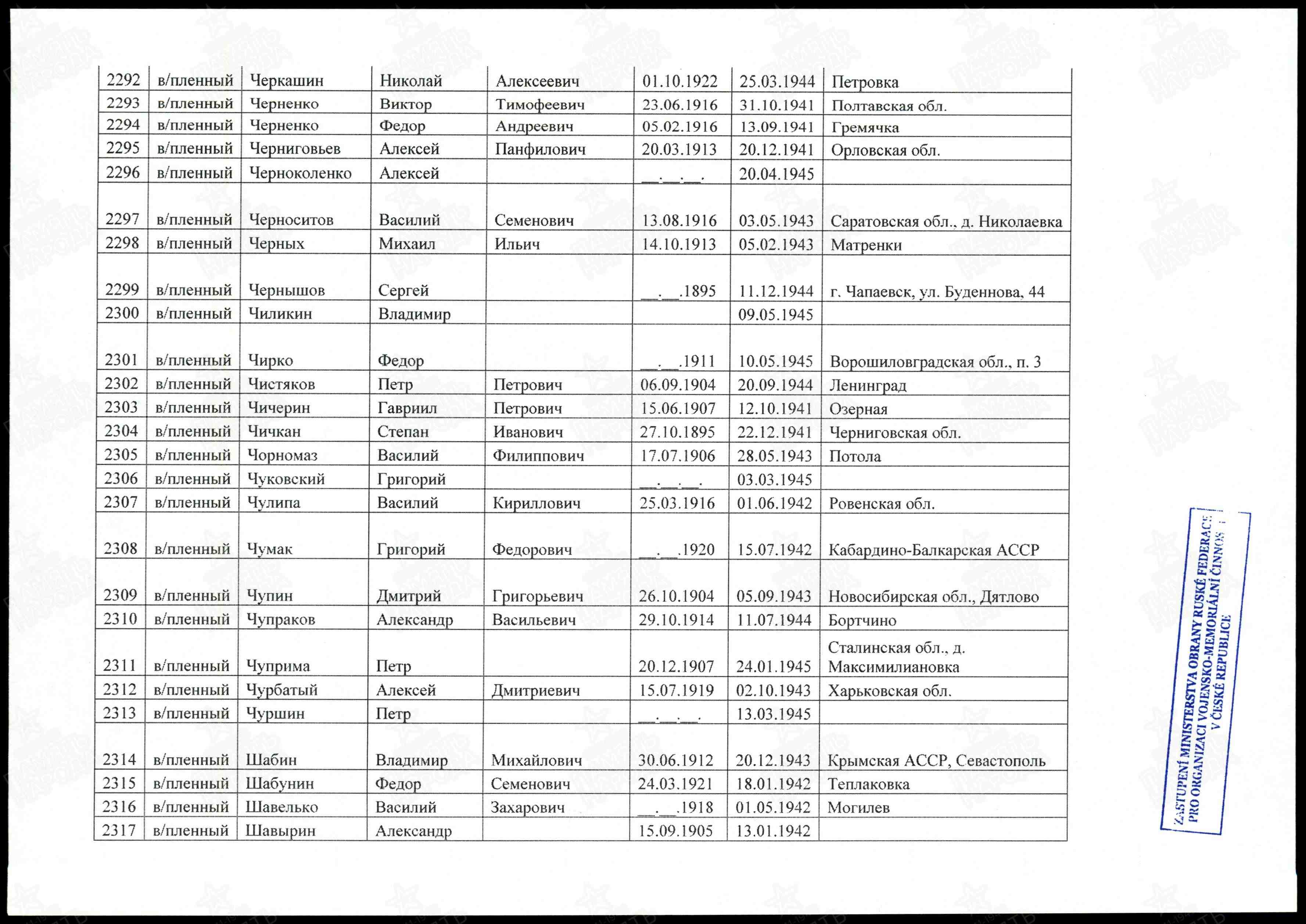 Запись о военнопленном