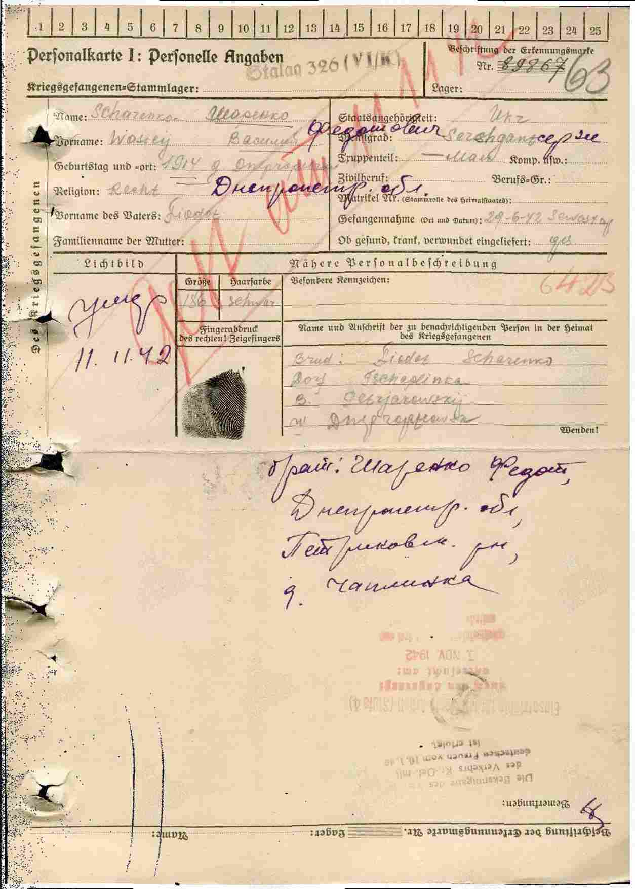 Место заключения: шталаг VI K (326)