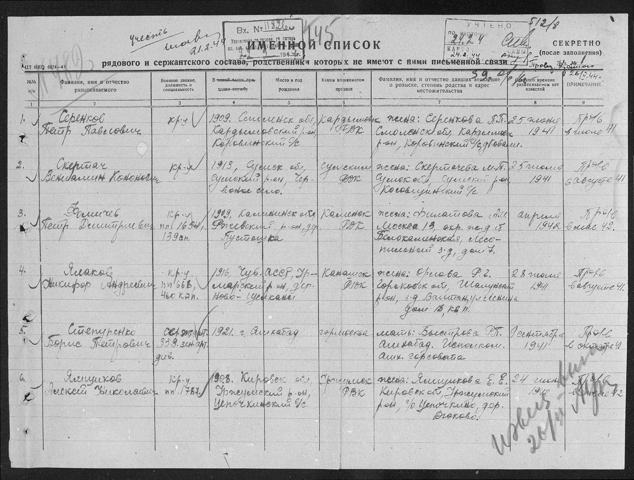 Дополнительно: Дата призыва: 09.06.1942 Место призыва: Уржумский РВК, Кировская обл., Уржумский р-н