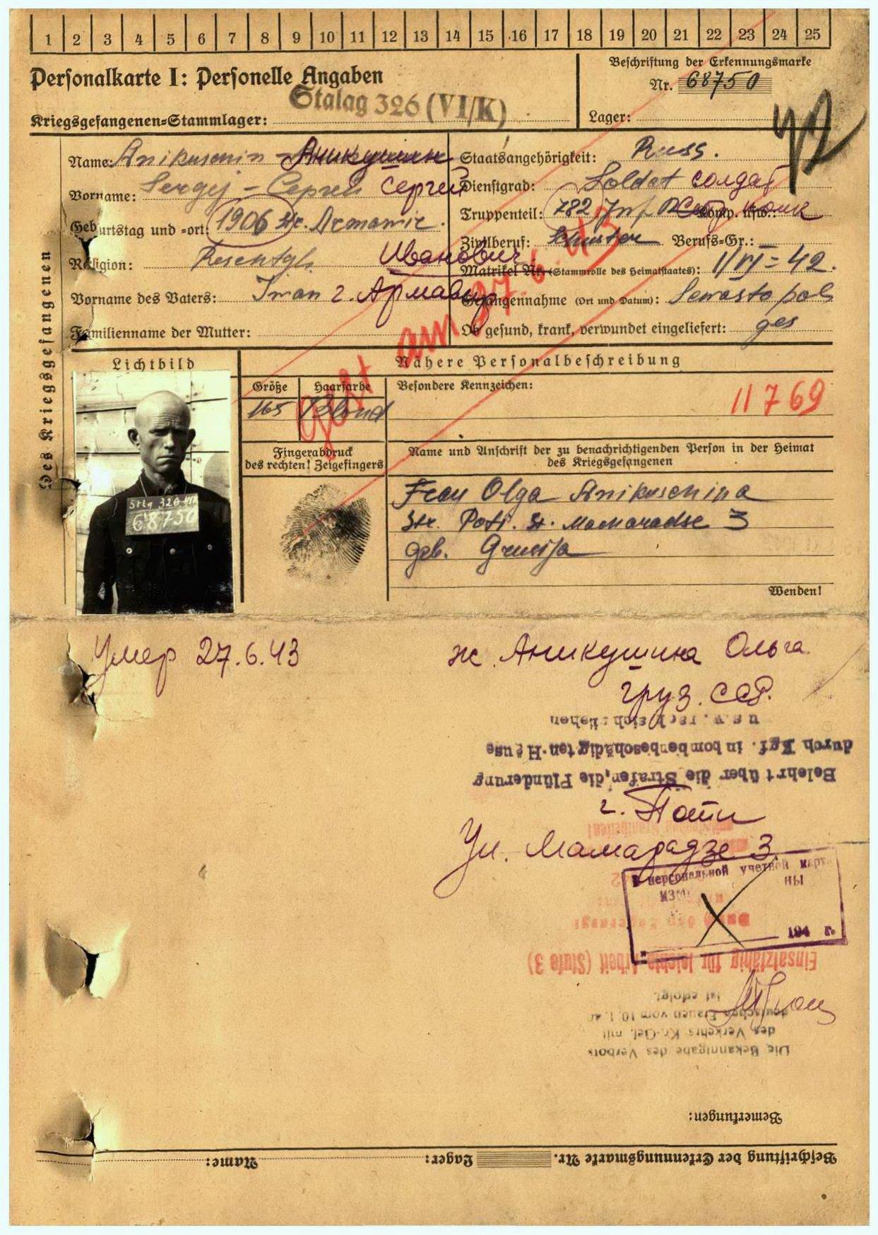 Место заключения: шталаг VI K (326)