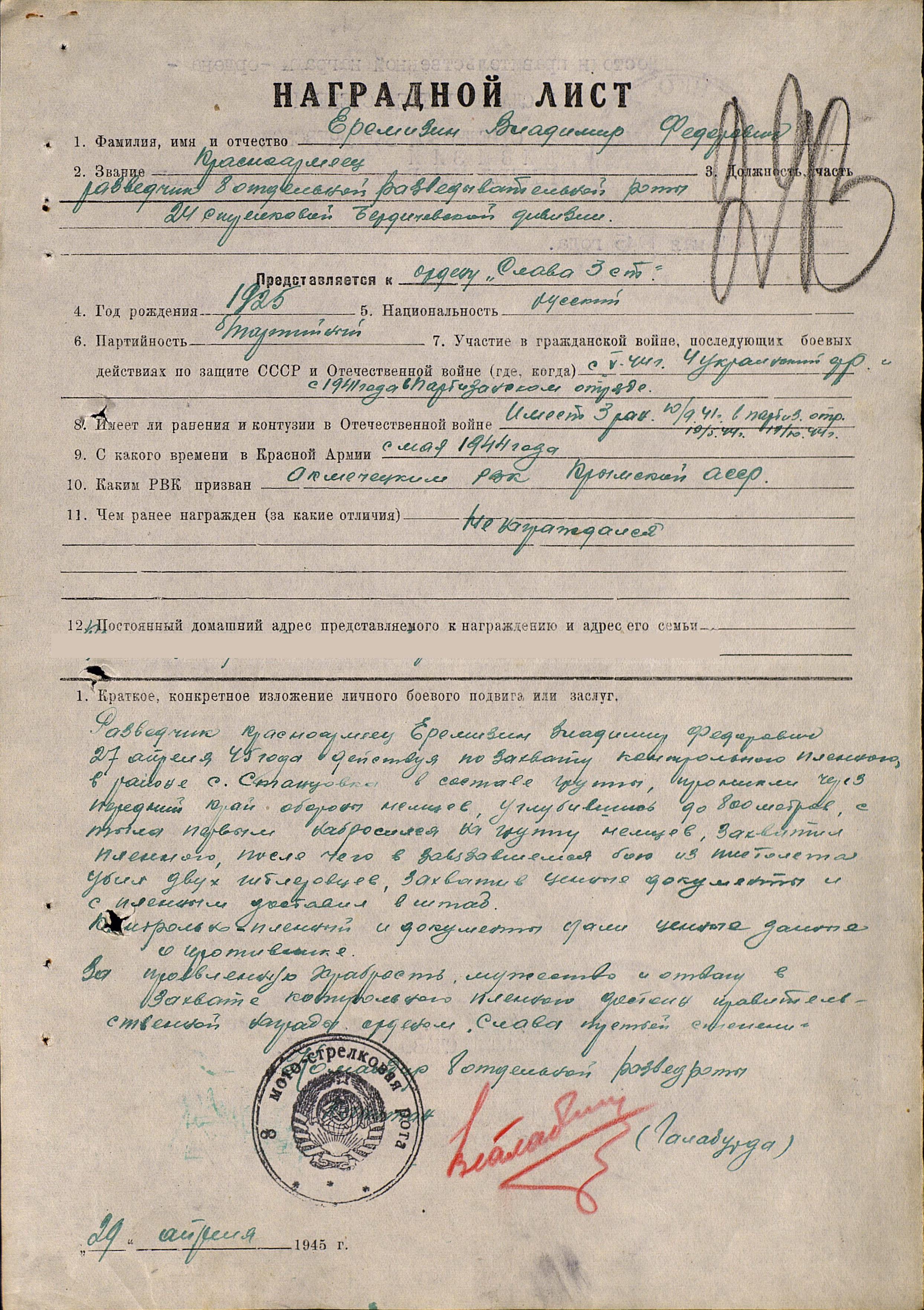 ЦАМО: ф.33,о.686196, д.5692. ЦАМО: ф.33, о.690306, д.2947.ЦАМО: ф.33, о.717037, д.2062