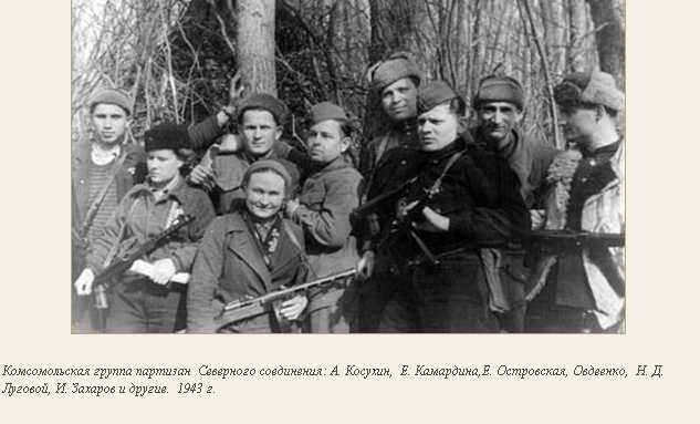 Секретарь Зуйского РК ВЛКСМ. В партизанах с 1.11.41 по 29.09.42г. и с 3.11.43г. по 20.04.44 г. Боец Зуйского отряда (1.11.41-19.07.42г.г.); помощник комиссара 2-го района по комсомолу (19.07.42-29.09.42г.г.). Эвакуирована в Сочи. (29.09.42-3.11.43г.г.). Помощник комиссара бригады по комсомольской работе (3.11.43-20.04.44г.г.)