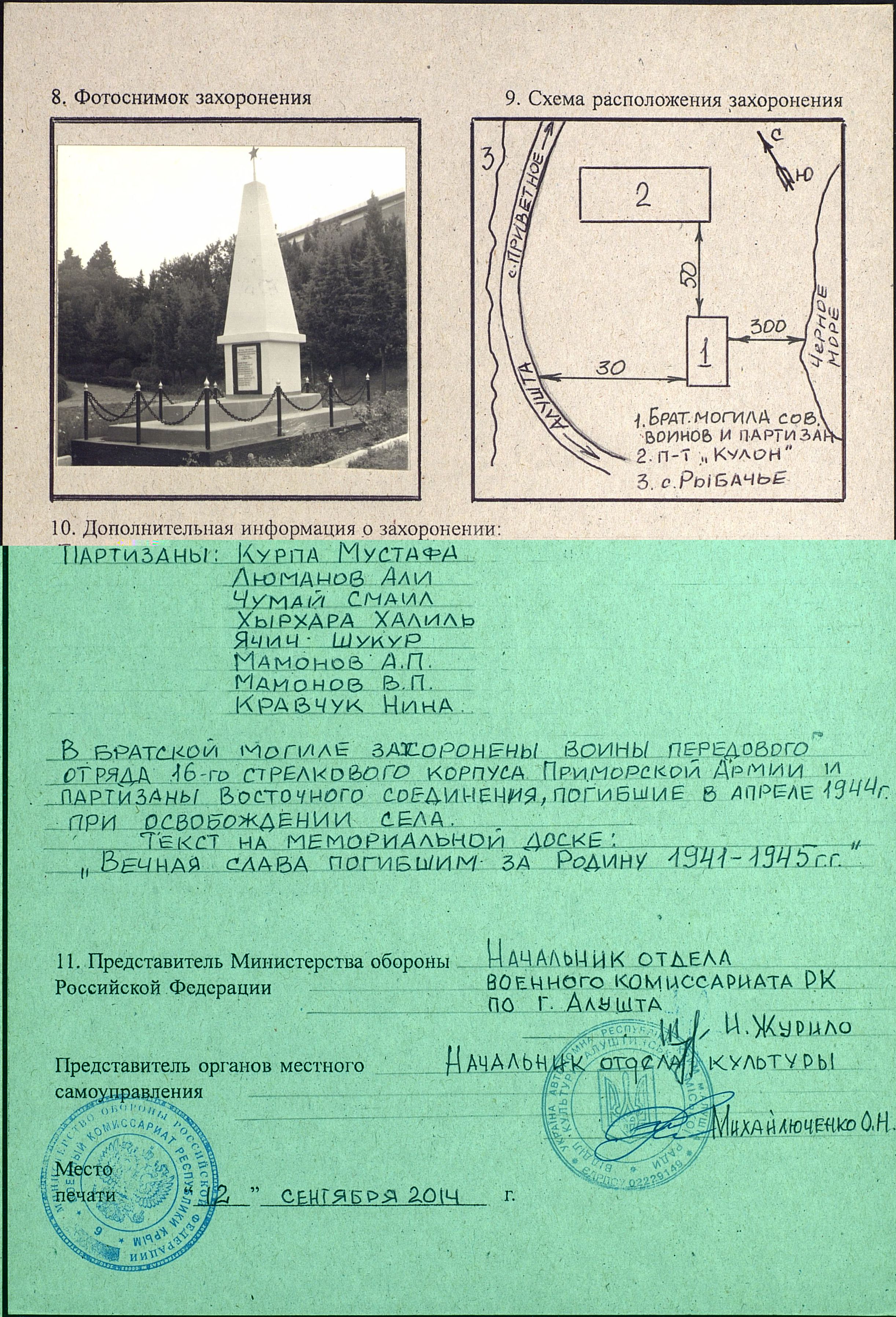 Реестр захоронений времен Великой Отчественной Войны в Севастополе