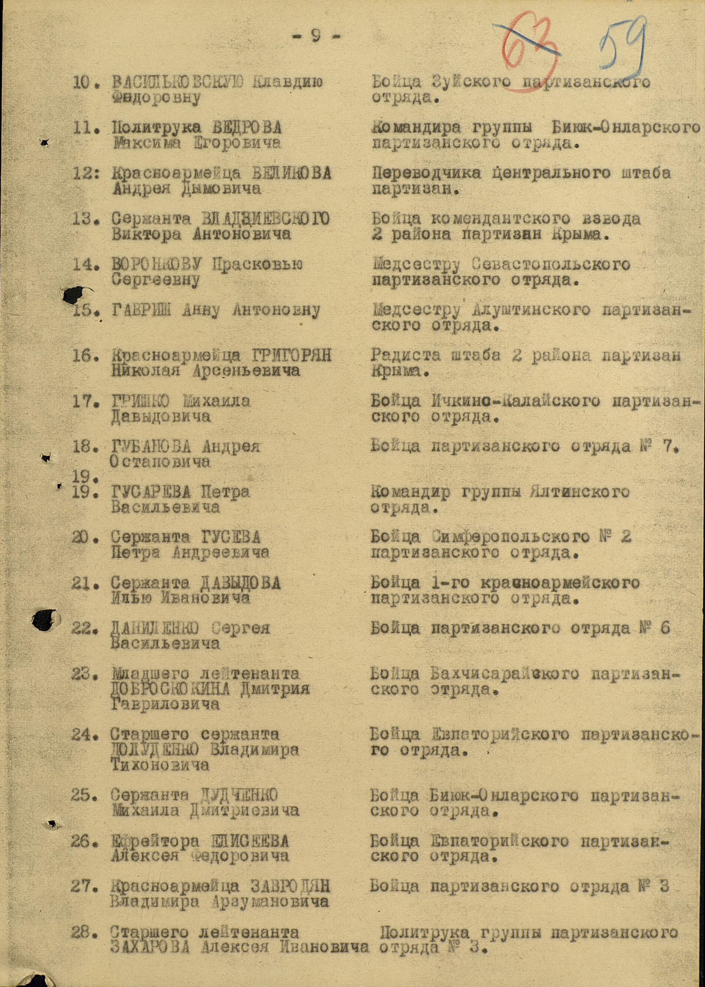 Из наградного листа: принимала участие в 7-ми боевых операциях по борьбе с немецко- румынскими оккупантами где проявила отвагу и мужество и уничтожила до 15 окупантов.