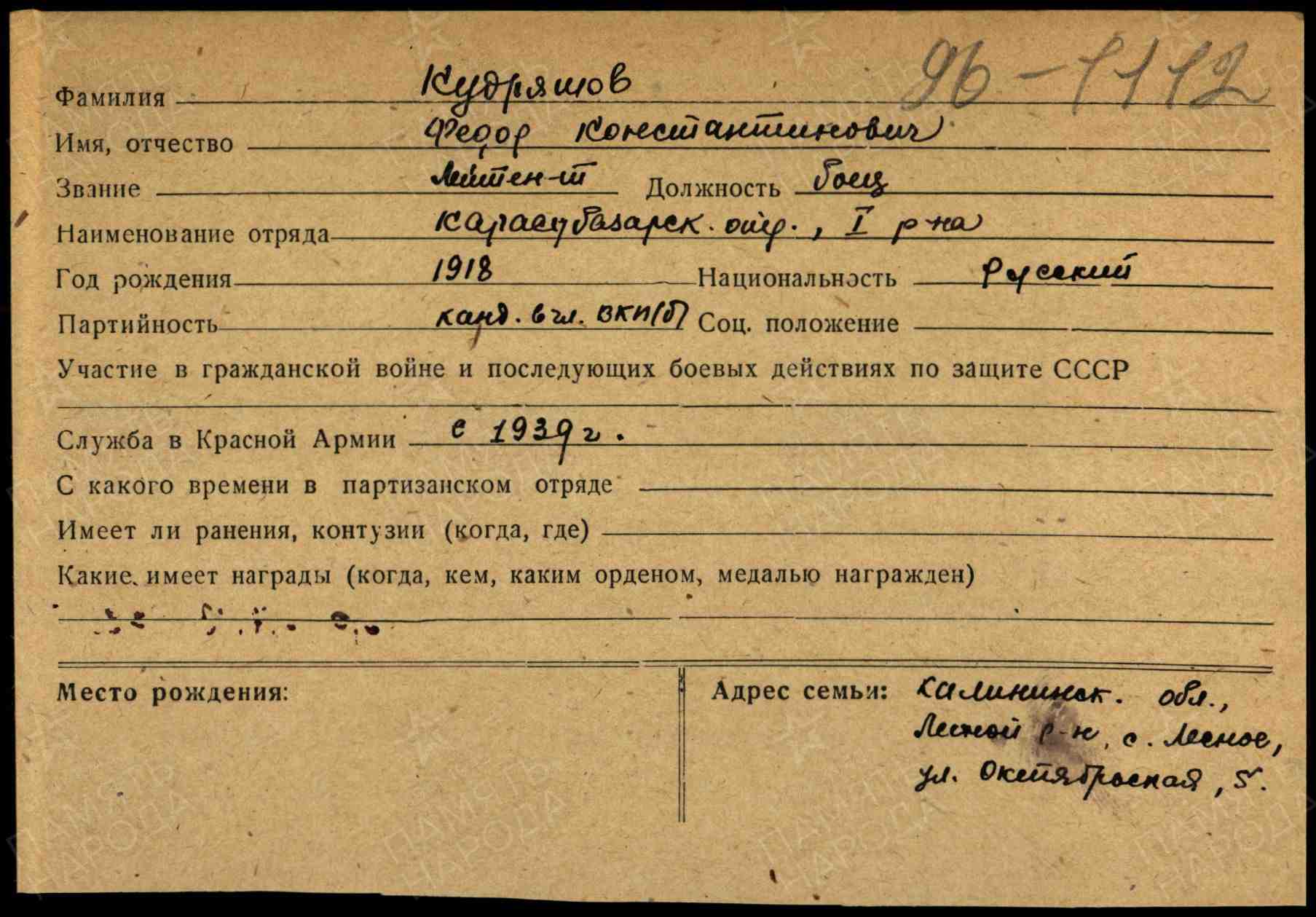 ЦАМО:Учетно-послужная картотека офицерского состава:Шкаф 107,ящик 32.