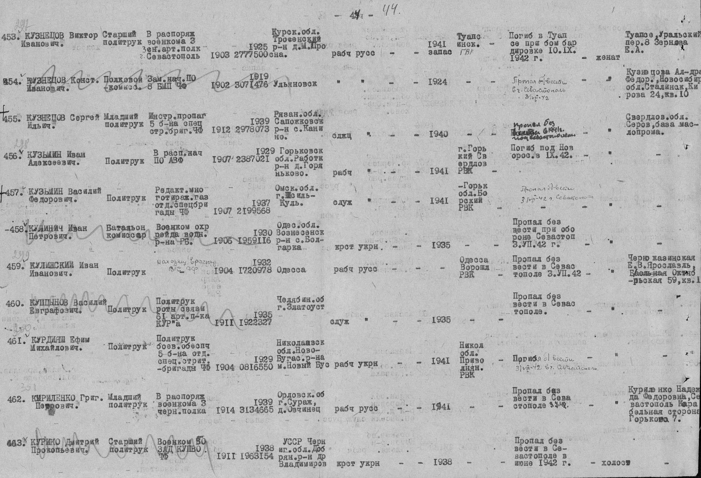 ЦАМО ф.58,о.18003,д.1575; ЦВМА ф.11,о.3,д.35; ЦВМА ф.1250,о.2,д.437