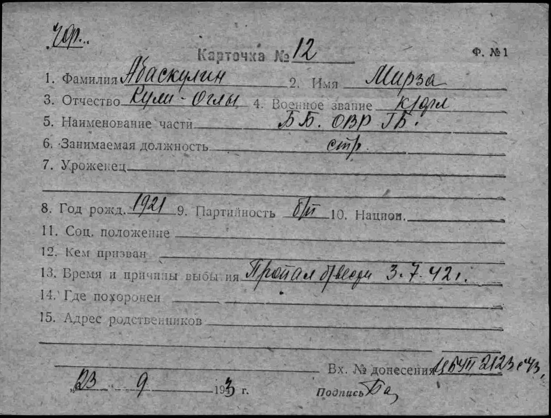 ЦВМА Картотека безвозвратных потерь; ЦВМА ф.864,о.1,д.1334; ЦВМА ф.1250,о.2,д.163