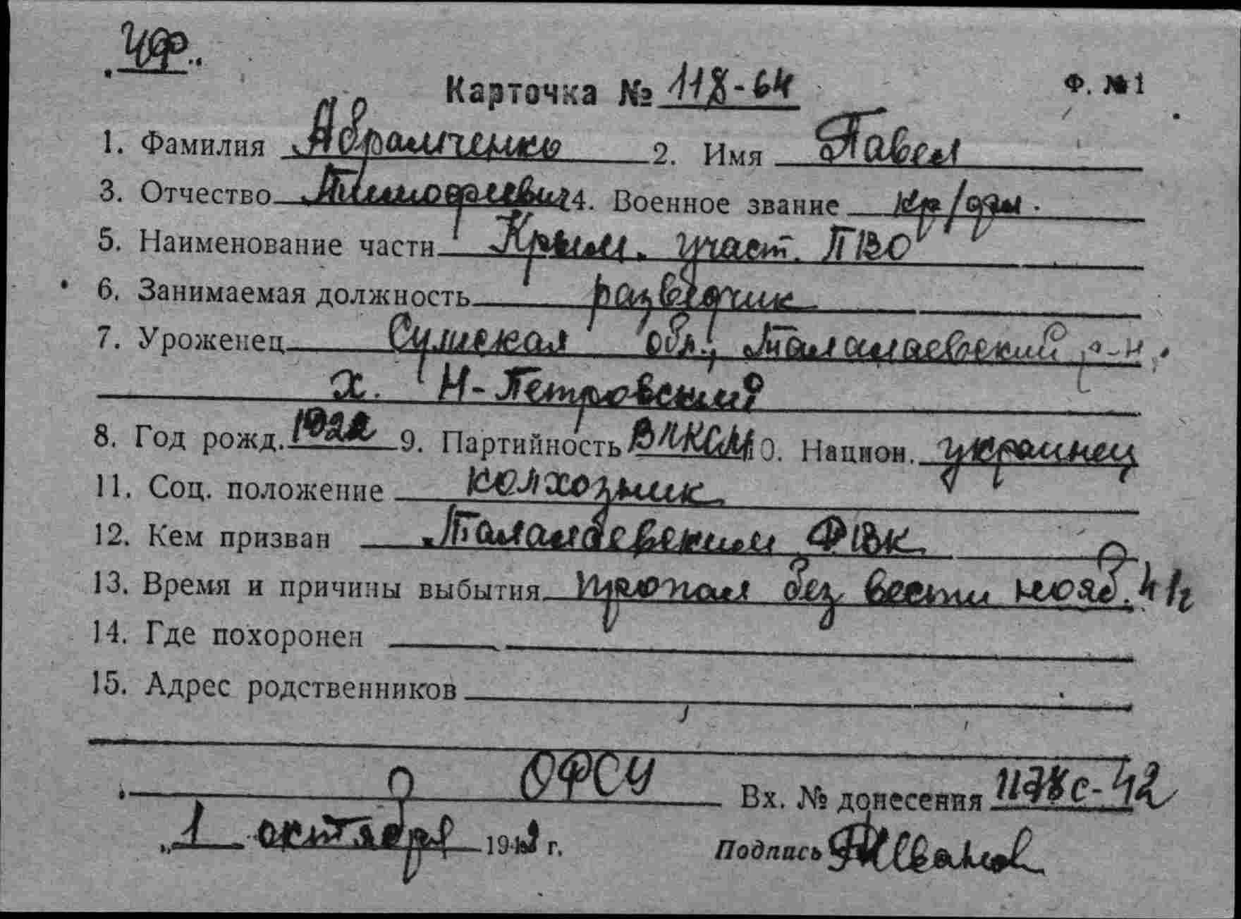 ЦВМА Картотека безвозвратных потерь; ЦВМа документы