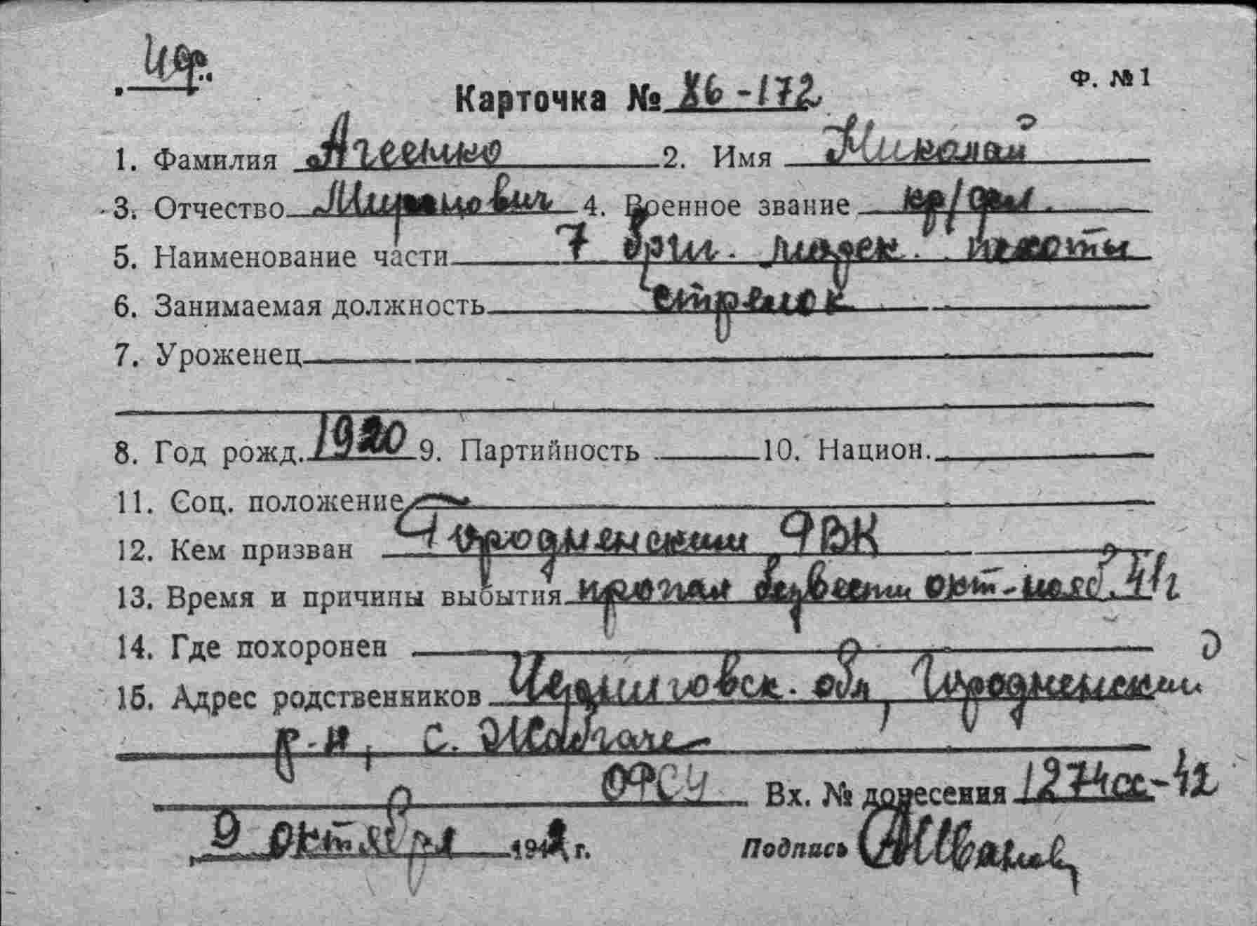 ЦВМА Картотека безвозвратных потерь; ЦВМА документы