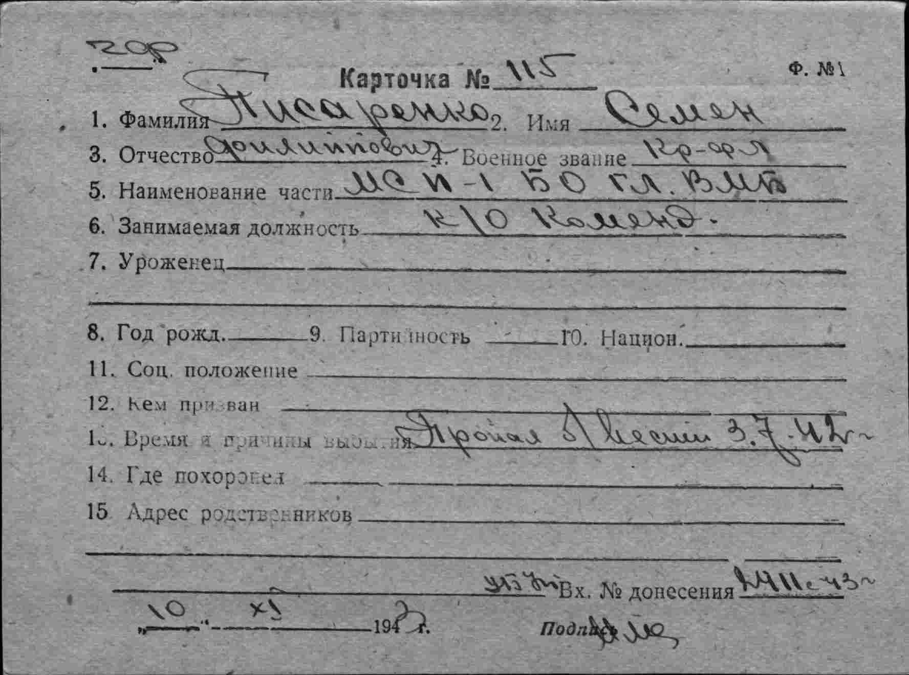 ЦВМА Картотека безвозвратных потерь; ЦВМА документы