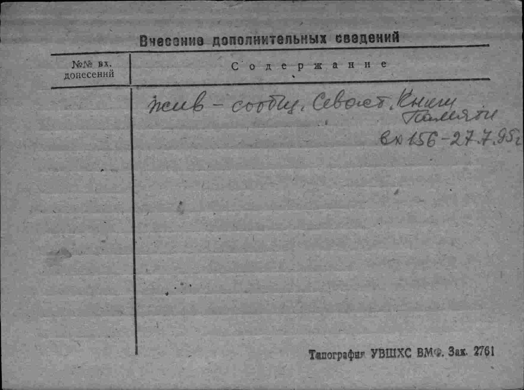 Место призыва: Севастопольский РВК, Крымская АССР, Севастопольский р-н