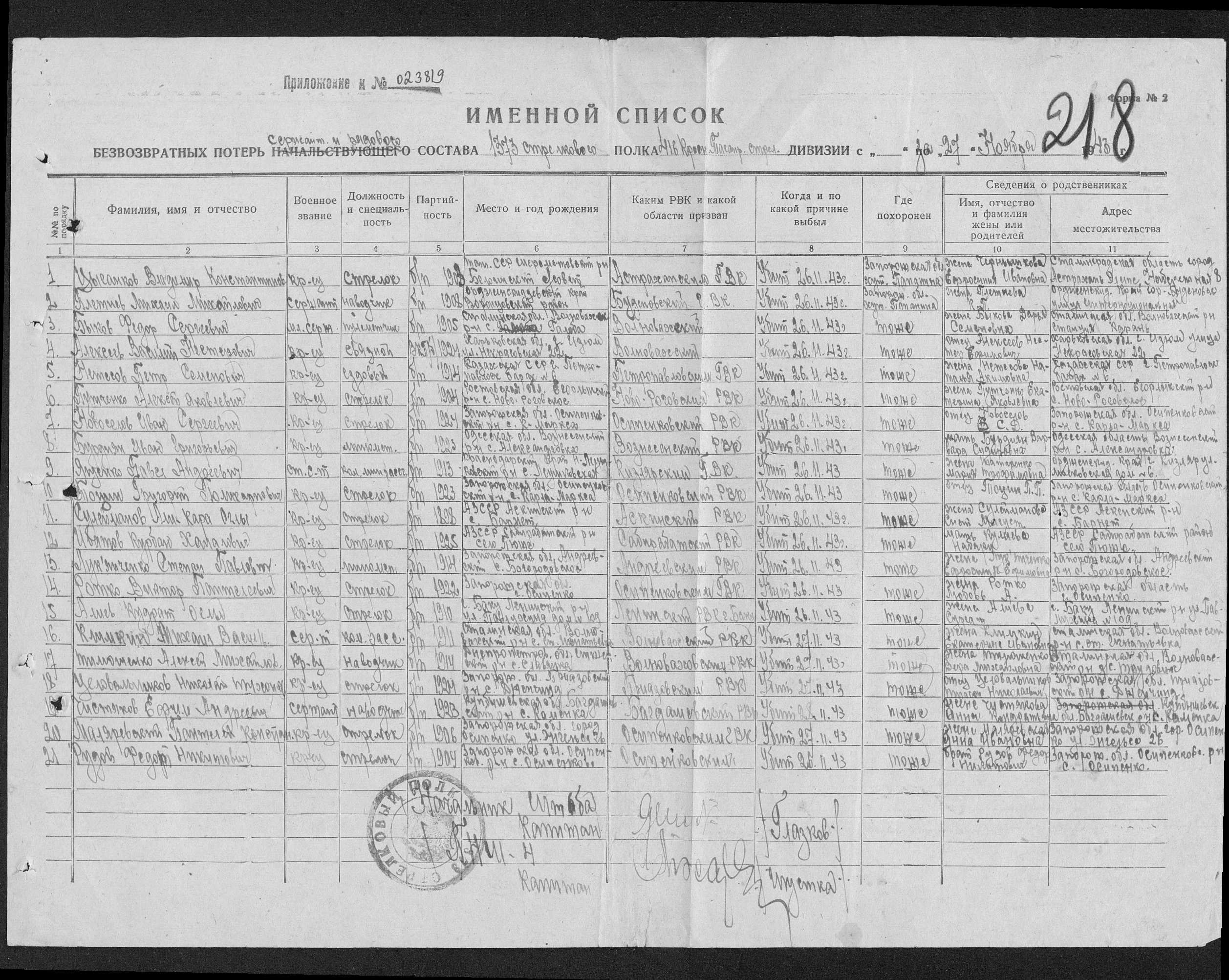 ЦВМА Картотека безвозвратных потерь; ЦАМО ф.58,о.18001,д.1585; ЦВМО ф.33,о.11458,д.146