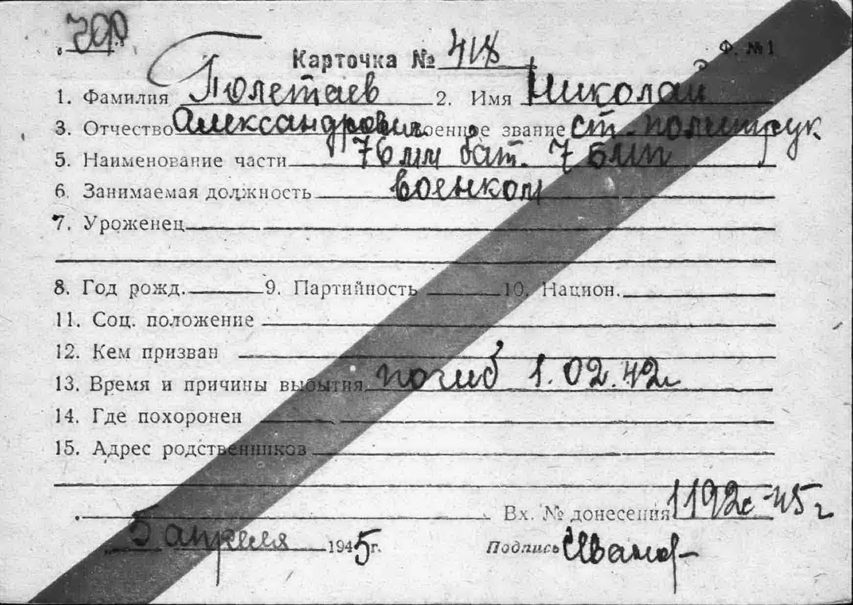 ЦВМА Картотека безвозвратных потерь; ЦВМА документы