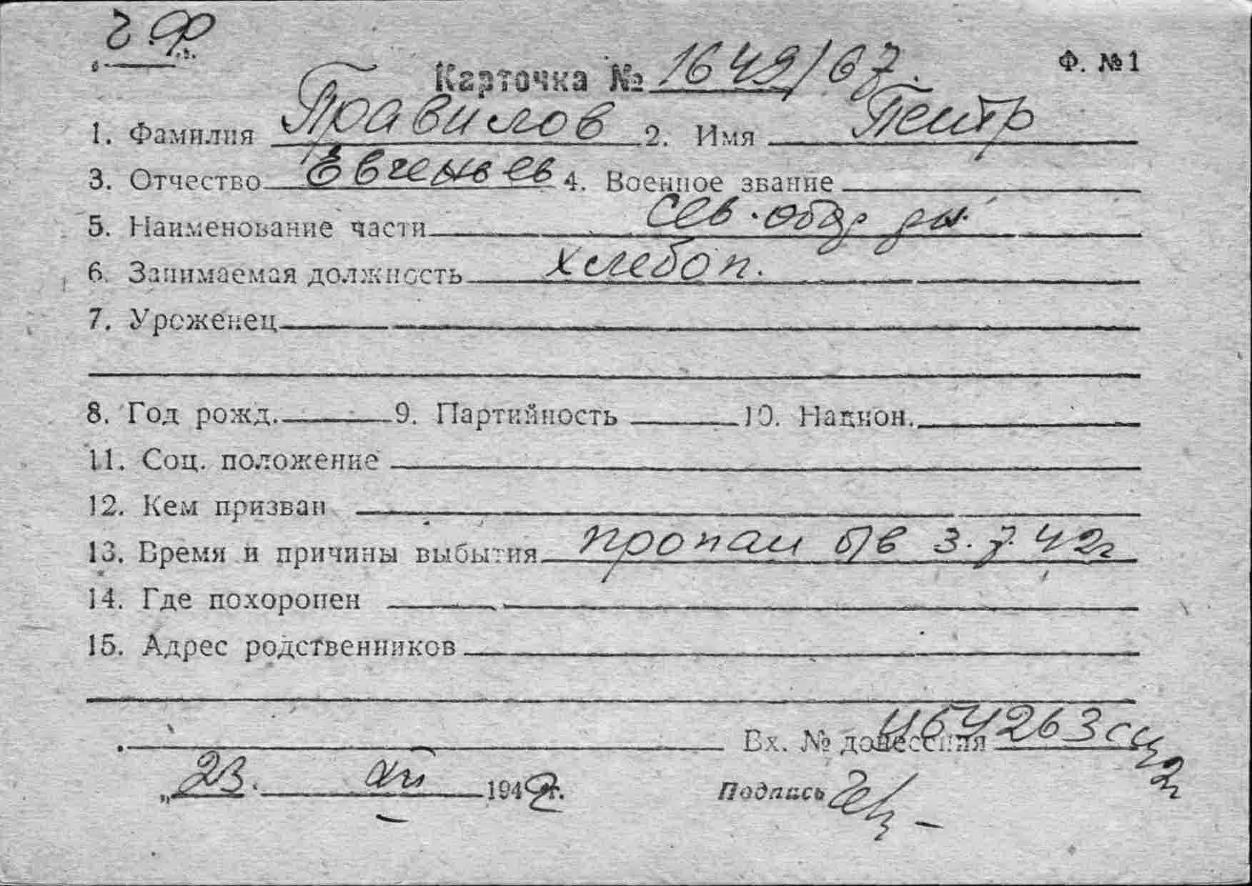 ЦВМА Картотека безвозвратных потерь; ЦВМА документы; ЦАМО ф.58,о.977528,д.150; ЦАМО ф.58,о.18002,д.1624; ЦАМО ф.58,о.18002,д.1444