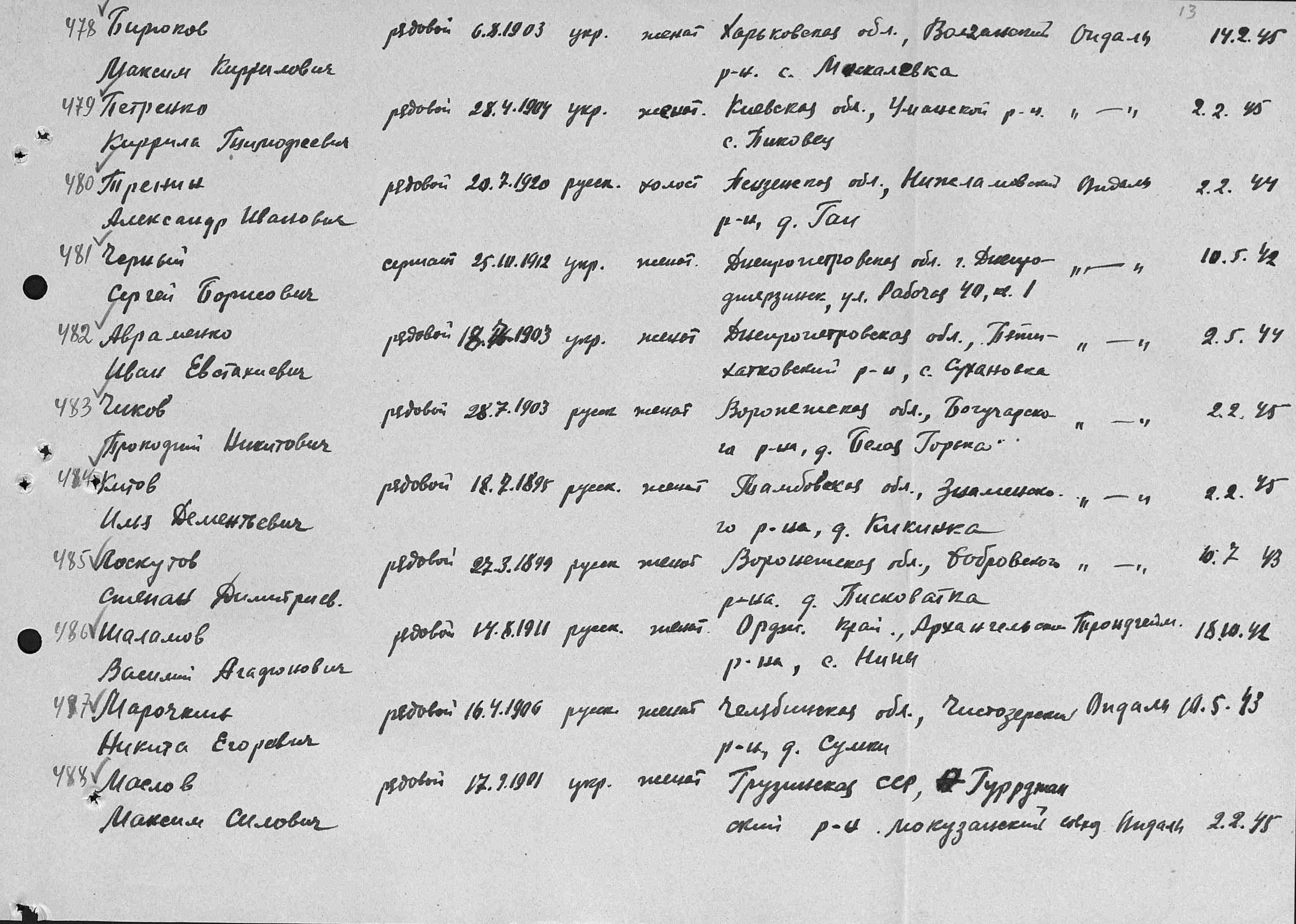 ЦВМА Картотека безвозвратных потерь; ЦВМА документы; ГАРФ ф.р-9526,о.6,д.1147