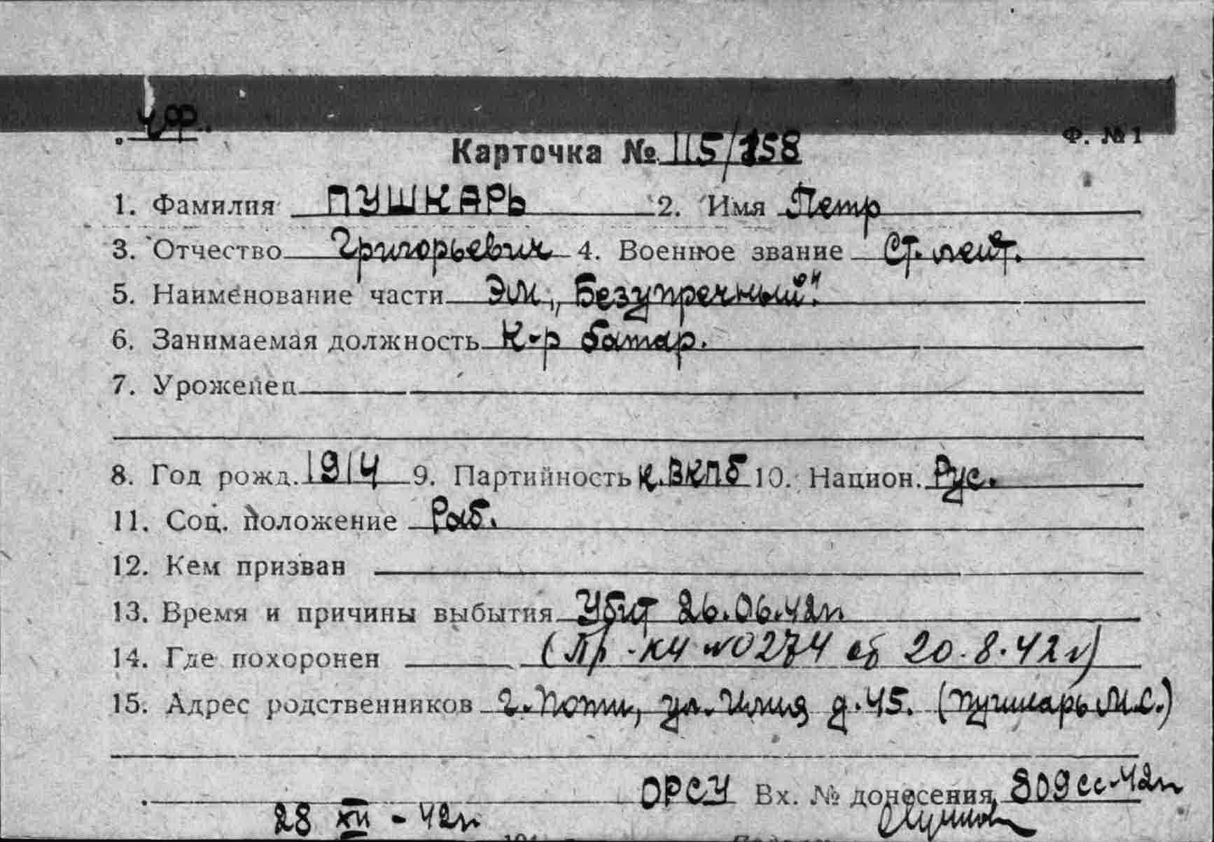 Ф.И.О.: Пушкарь Петр Григорьевич