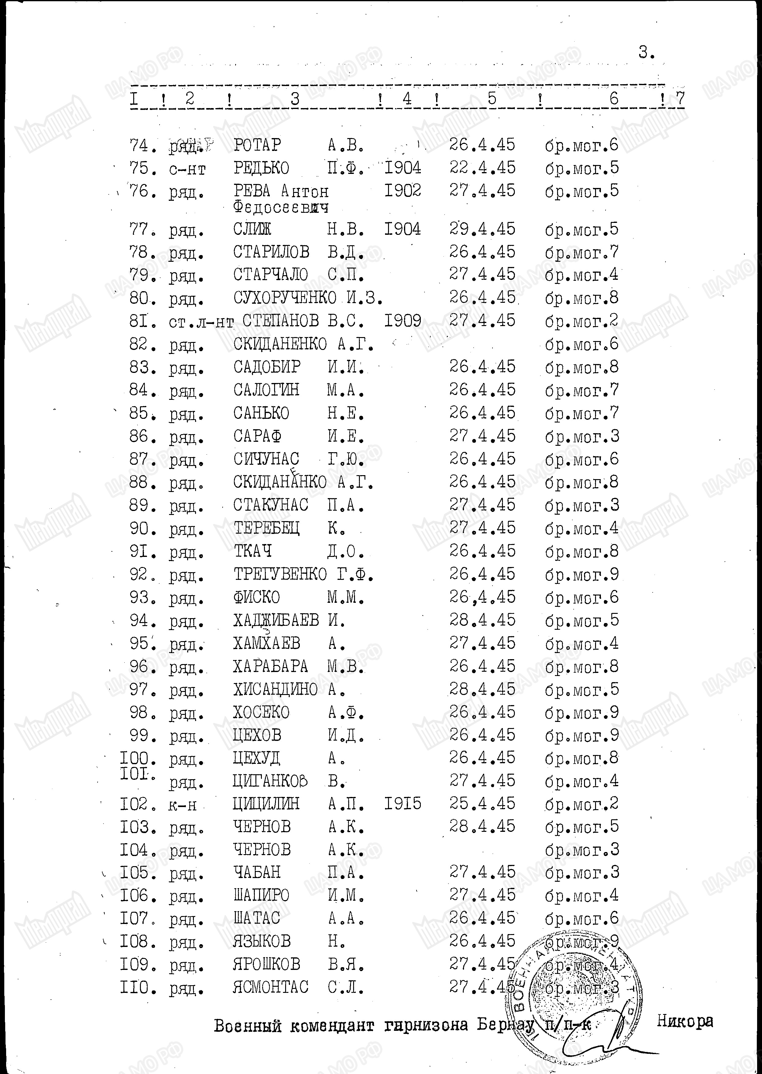 ЦАМО ф.58,о.18003,д.1390; ЦАМО ф.58,о.18003,д.725; ЦАМО ф.58,о.18002,д.365; ЦАМО документы; Паспорт захоронения