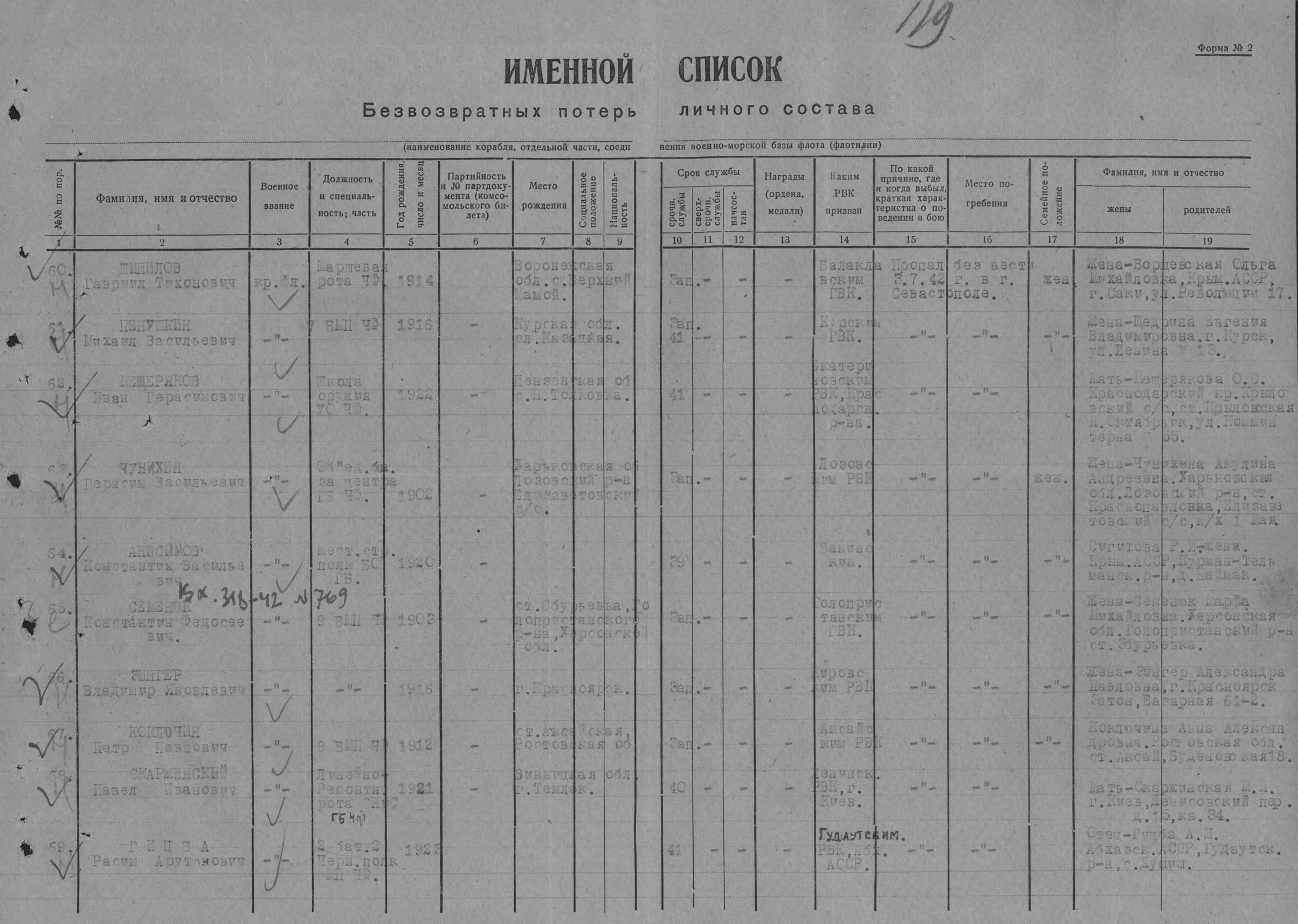 Реестр захоронений времен Великой Отчественной Войны в Севастополе