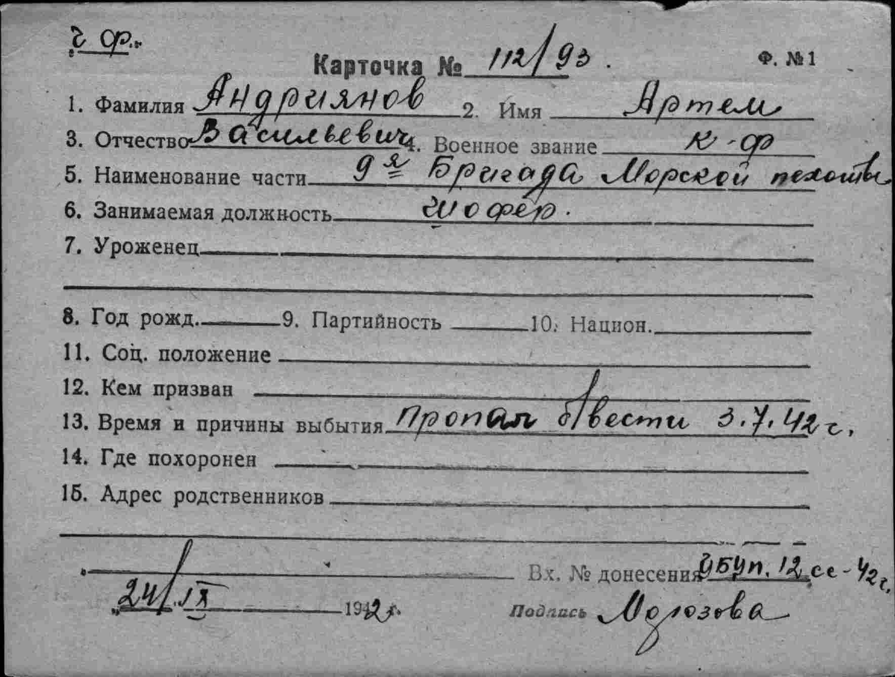 ЦВМА Картотека безвозвратных потерь; ЦВМА документы