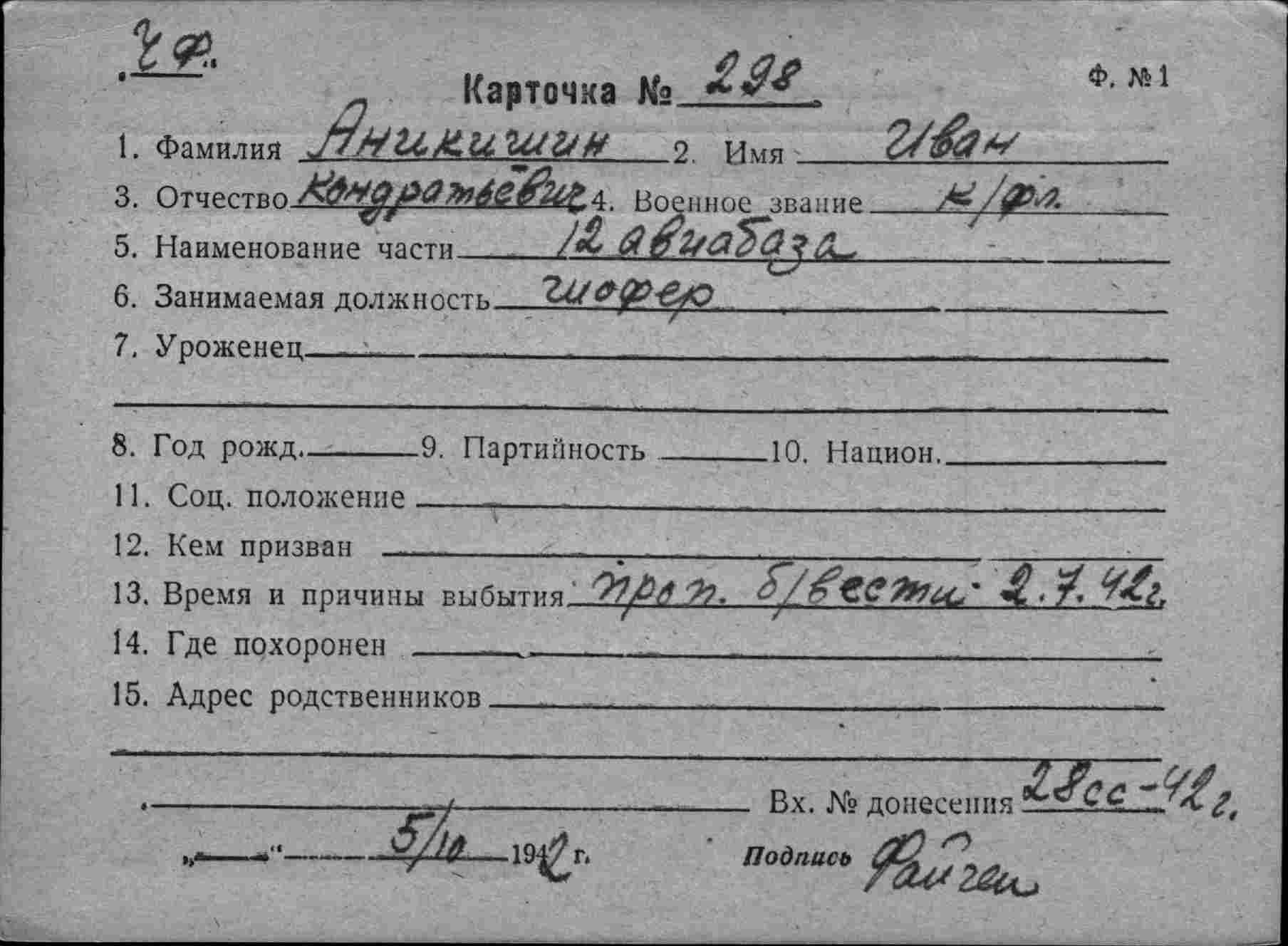 ЦВМА Картотека безвозвратных потерь; ЦВМА документы