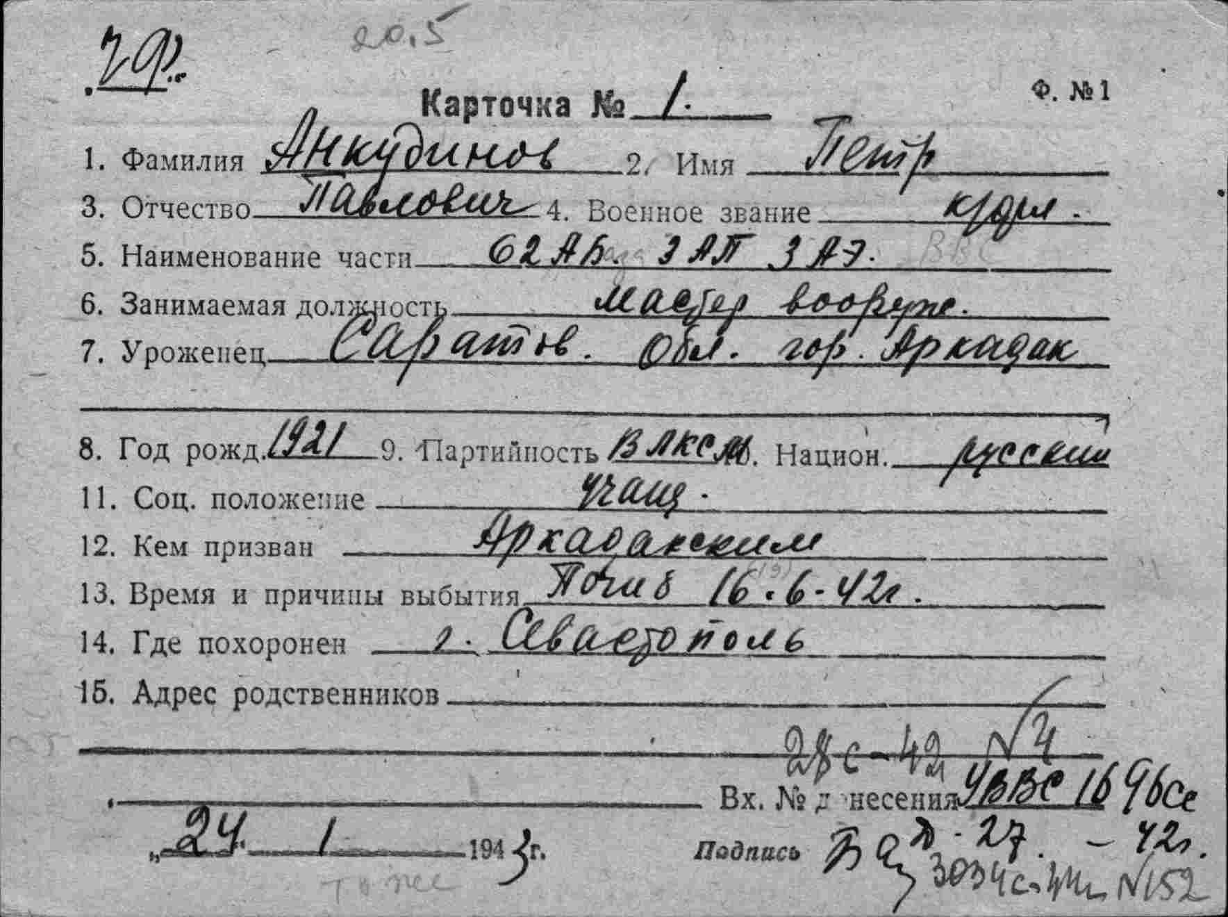Место призыва: Аркадакский РВК, Саратовская обл., Аркадакский р-н