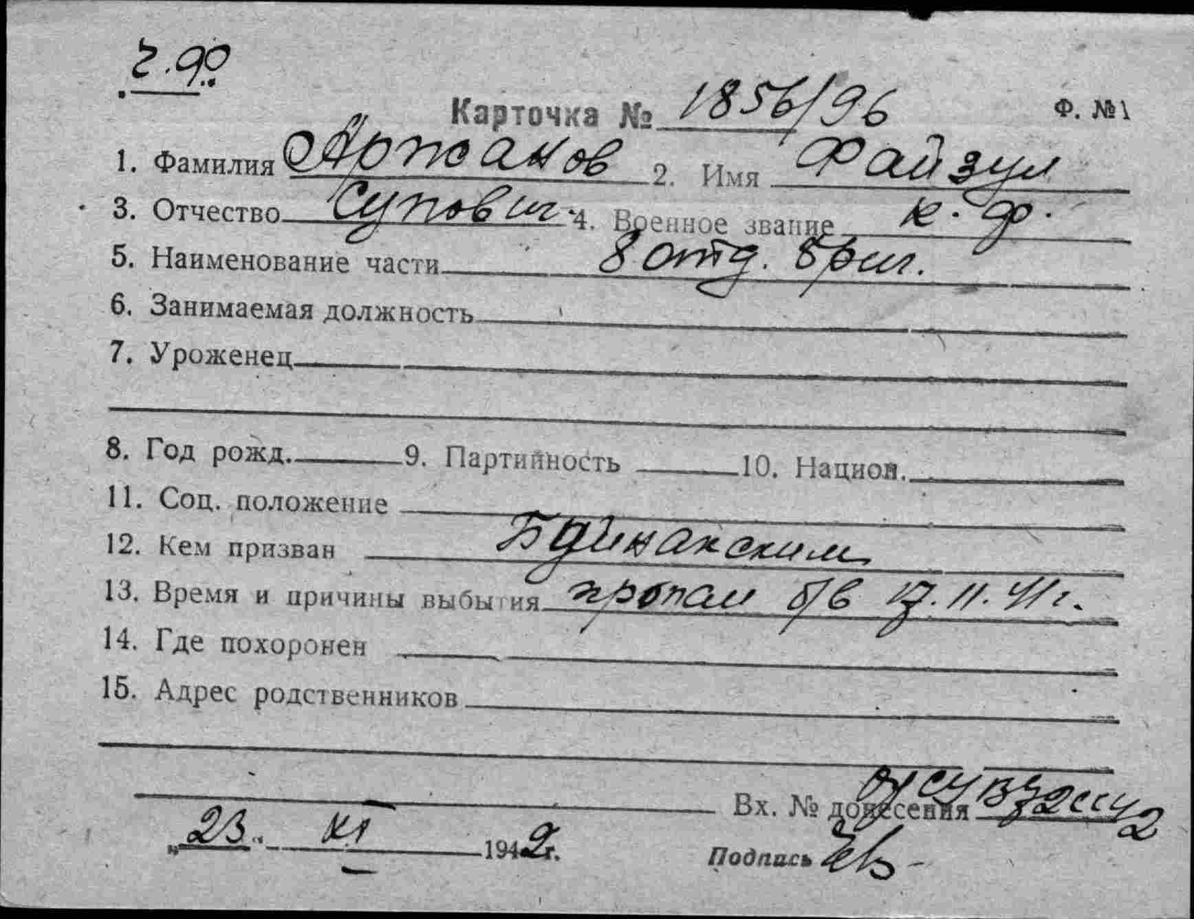 Место призыва: Буйнакский РВК, Дагестанская АССР, Буйнакский р-н