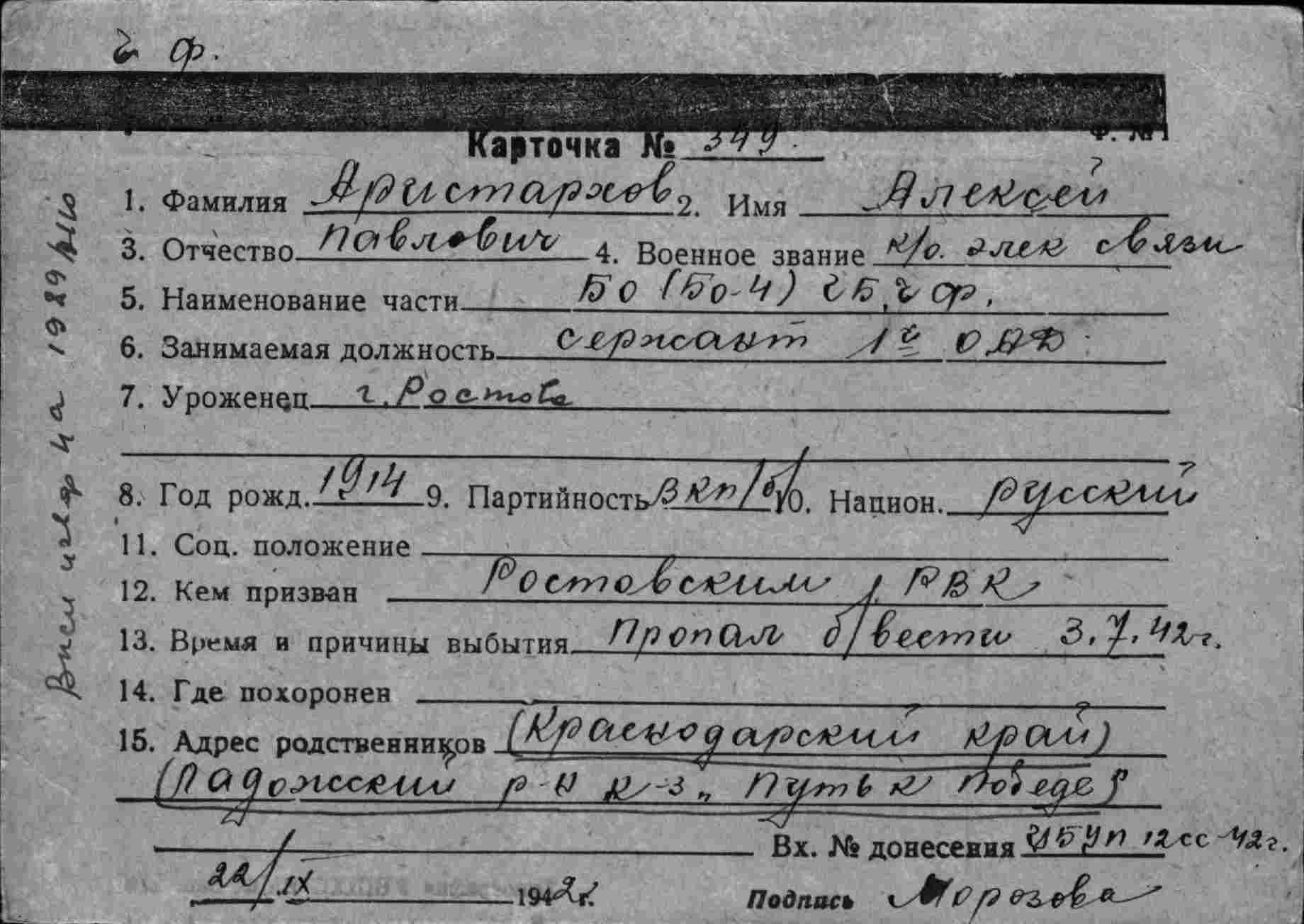 ЦВМА Картотека безвозвратных потерь; ЦВМА документы