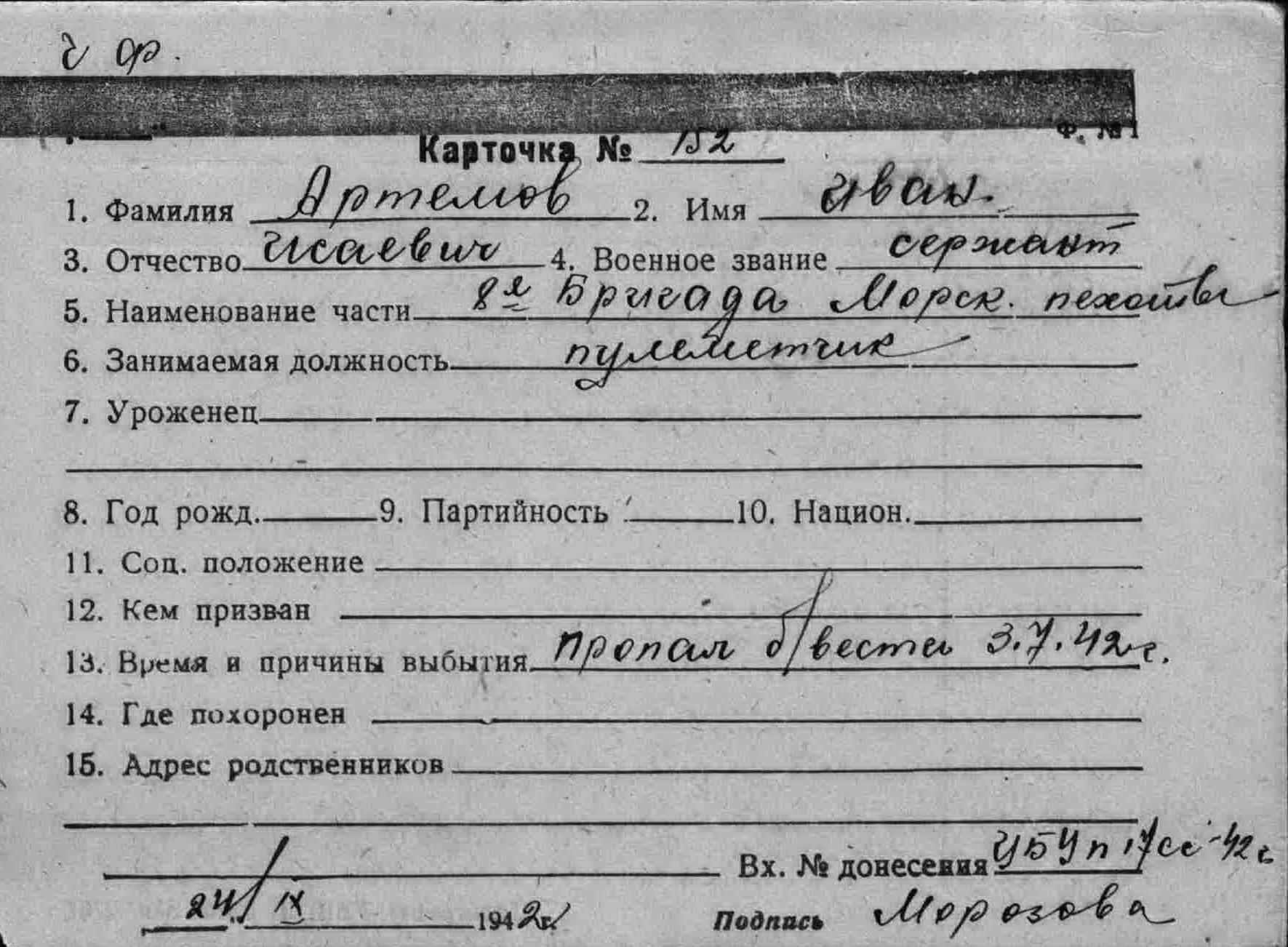 ЦВМА Картотека безвозвратных потерь; ЦВМА документы