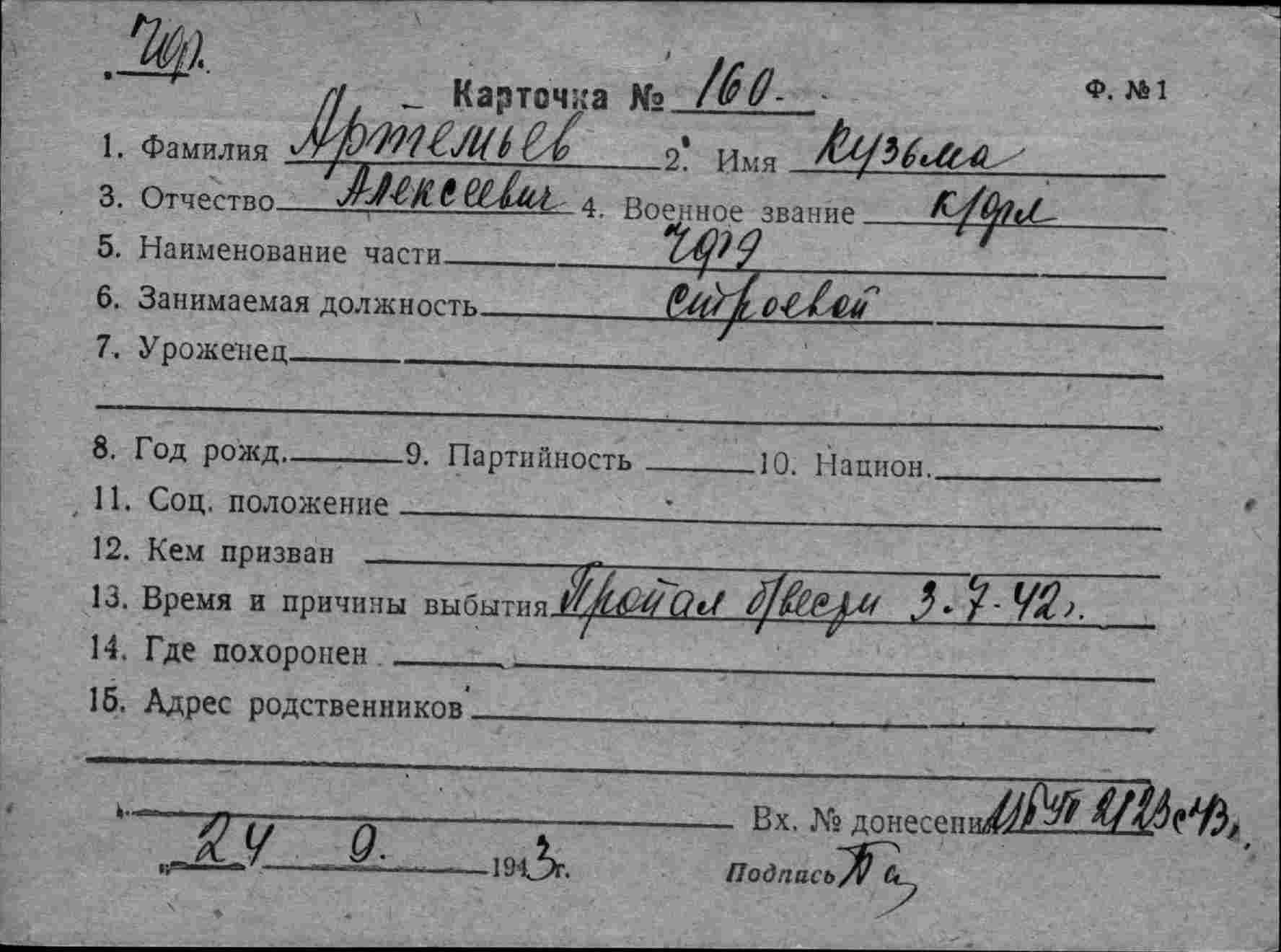 ЦВМА Картотека безвозвратных потерь; ЦВМА документы