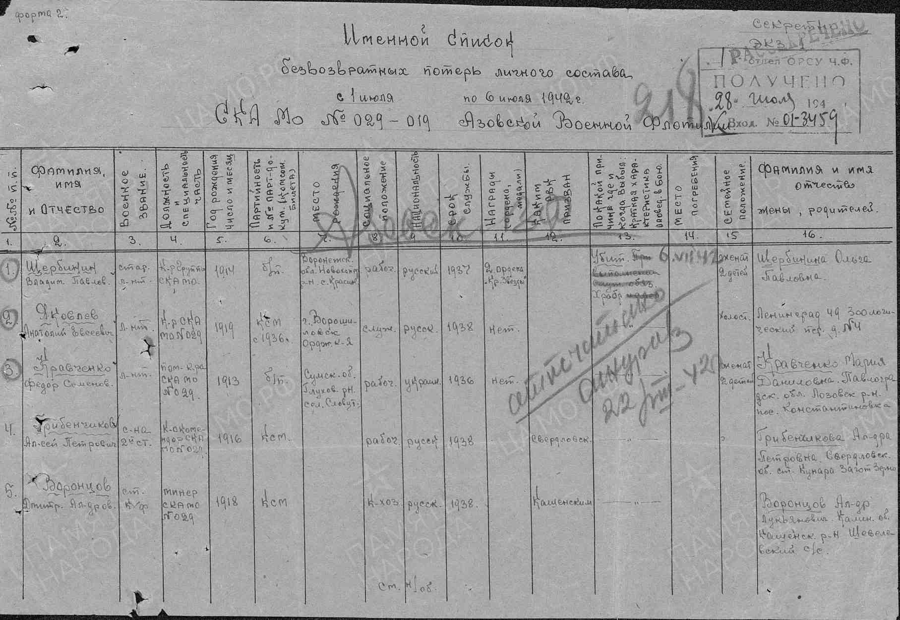 ЦВМА Картотека безвозвратных потерь; ЦВМА документы; ЦВМА ф.3,о.1,ед. хр.533
