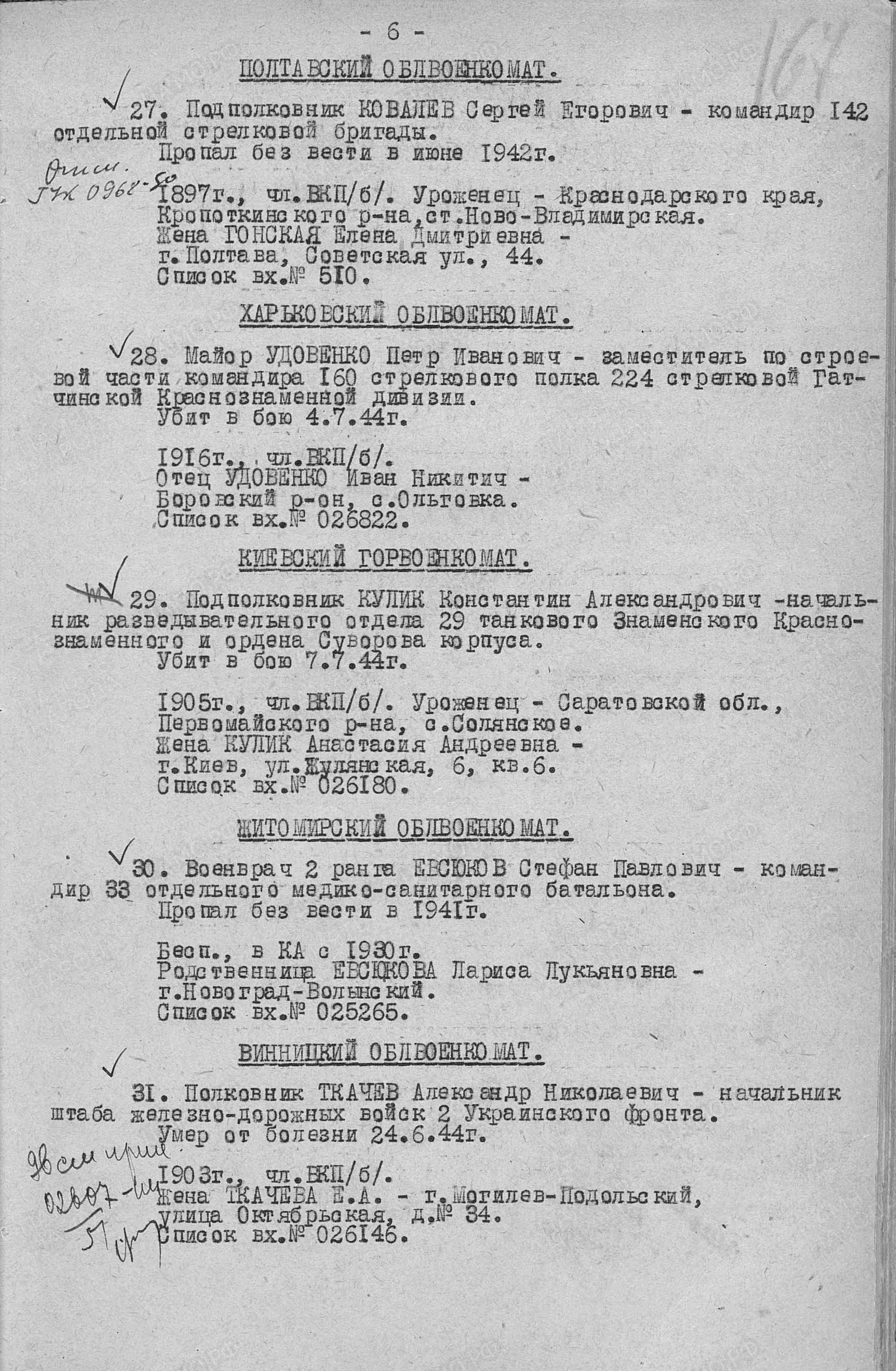 ЦАМО ф.33,о.11458,д.249; ЦАМО ф.33,о.563787,д.5; ЦАМО ф.33,о.682524,ед.хр.494