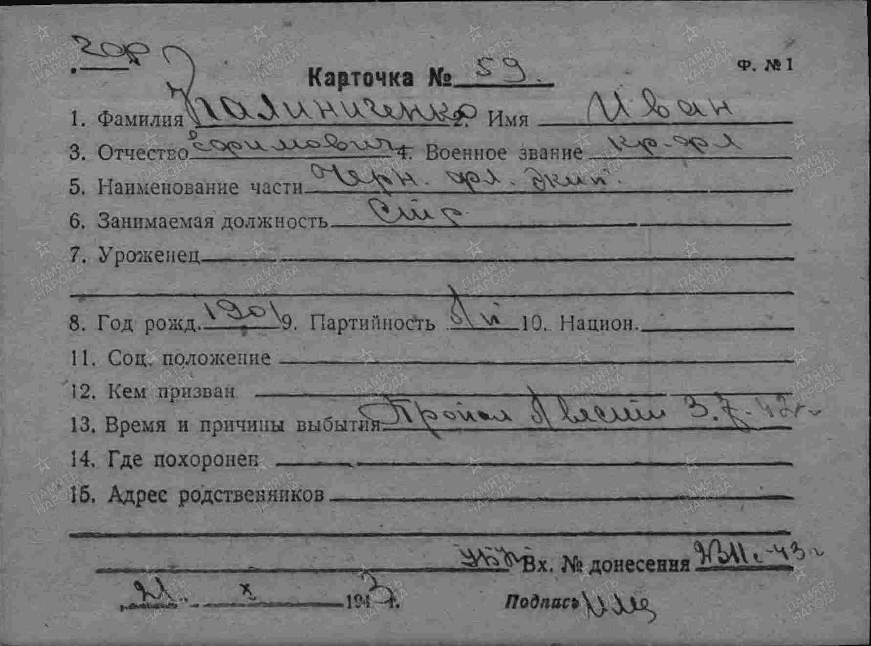 ЦВМА Картотека безвозвратных потерь; ЦВМА документы