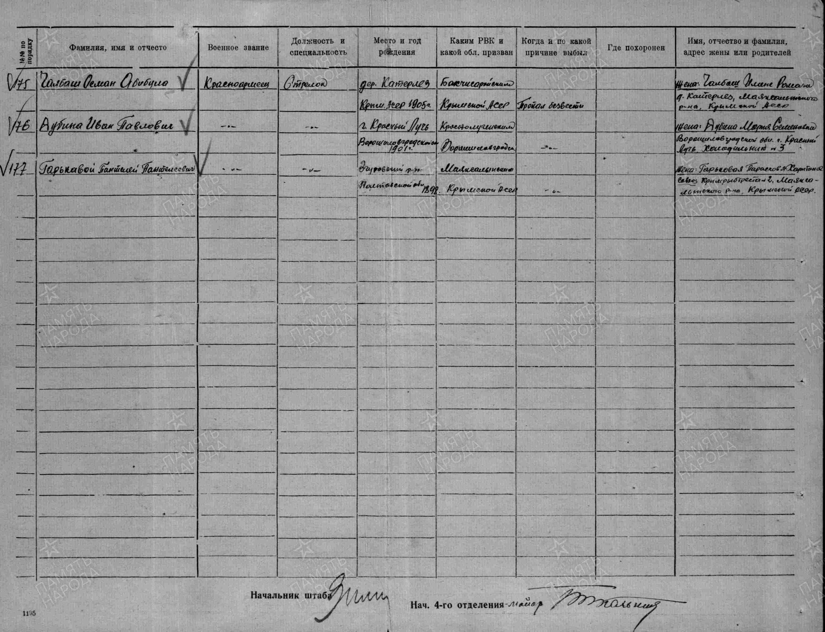 РГВА ф.32880,о.1,д.169; РГВА ф.32885,о.1,д.267; Книга памяти. Пограничники. Том 1; ЦАМО ф.8319,о.130948,д.10