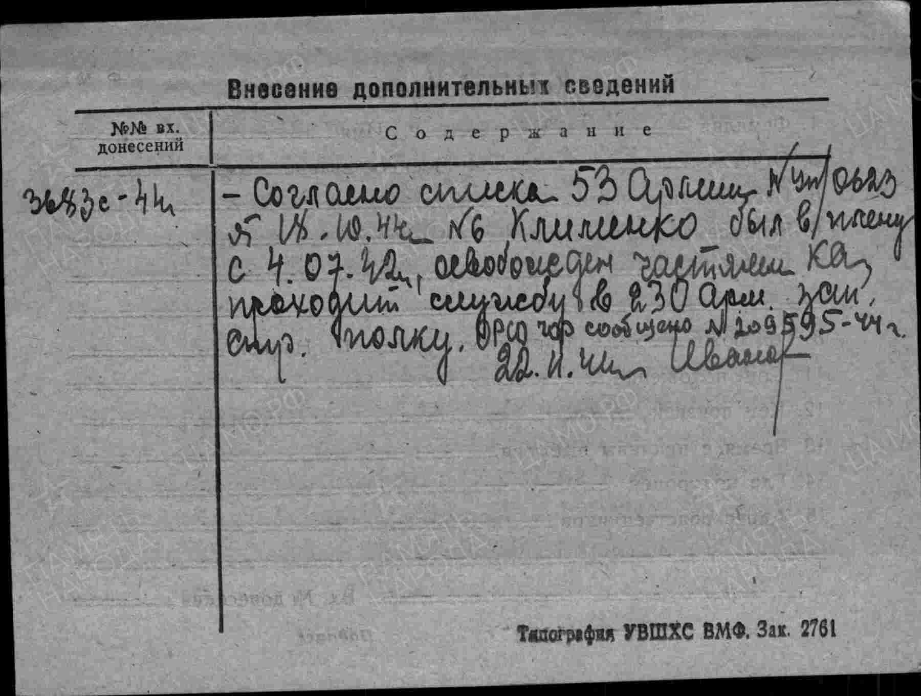 ЦВМА Картотека безвозвратных потерь; ЦВМА ф.1250,о.2,д.433; ЦВМА ф.864,о.1,д.1361; ЦВМА ф.864,о.1,д.1361; ЦВМА документы; ЦАМО ф.58,о.977528,д.128